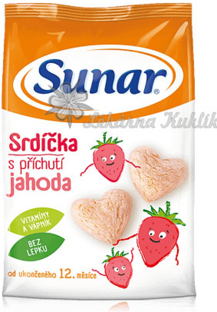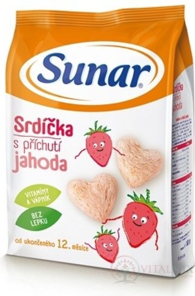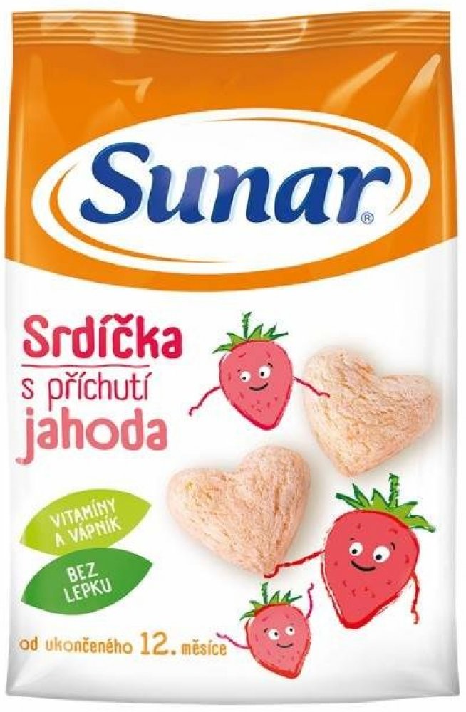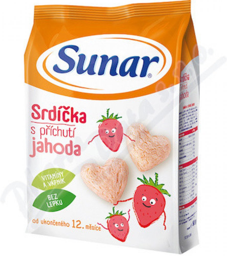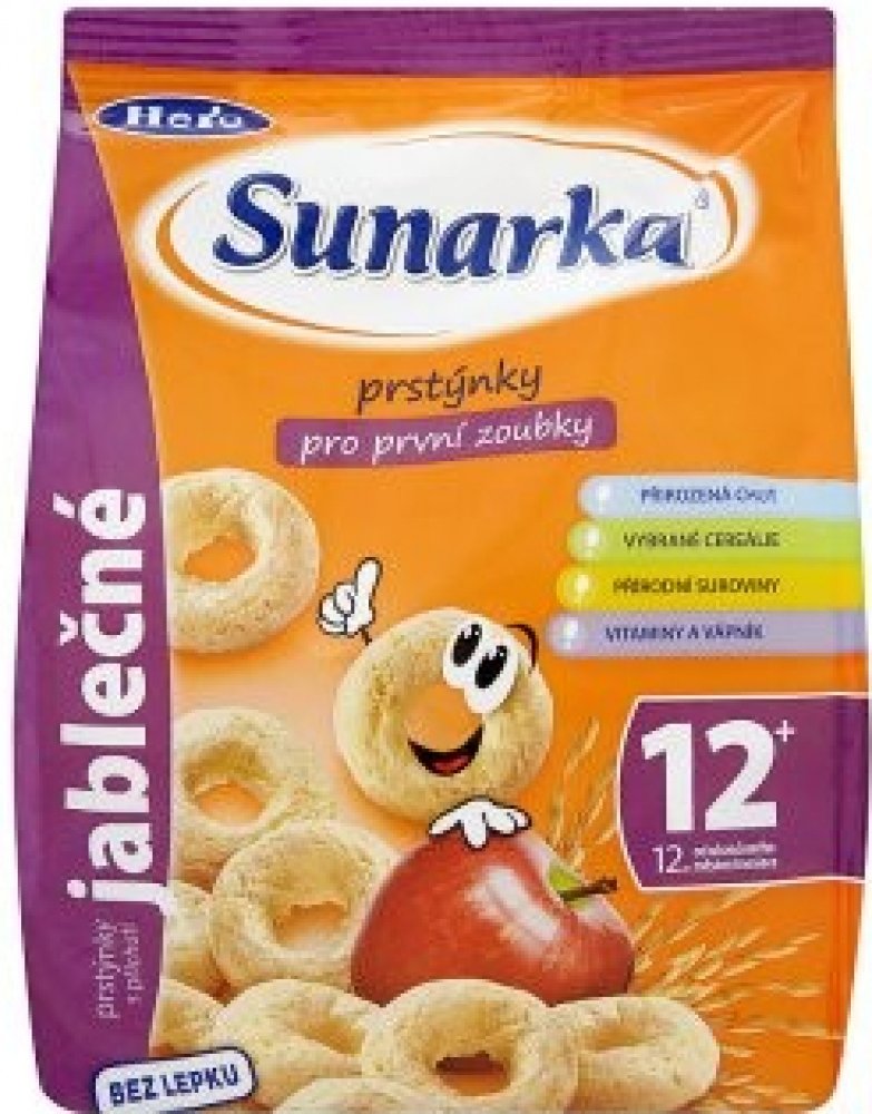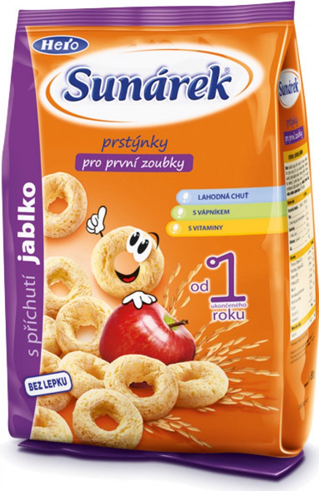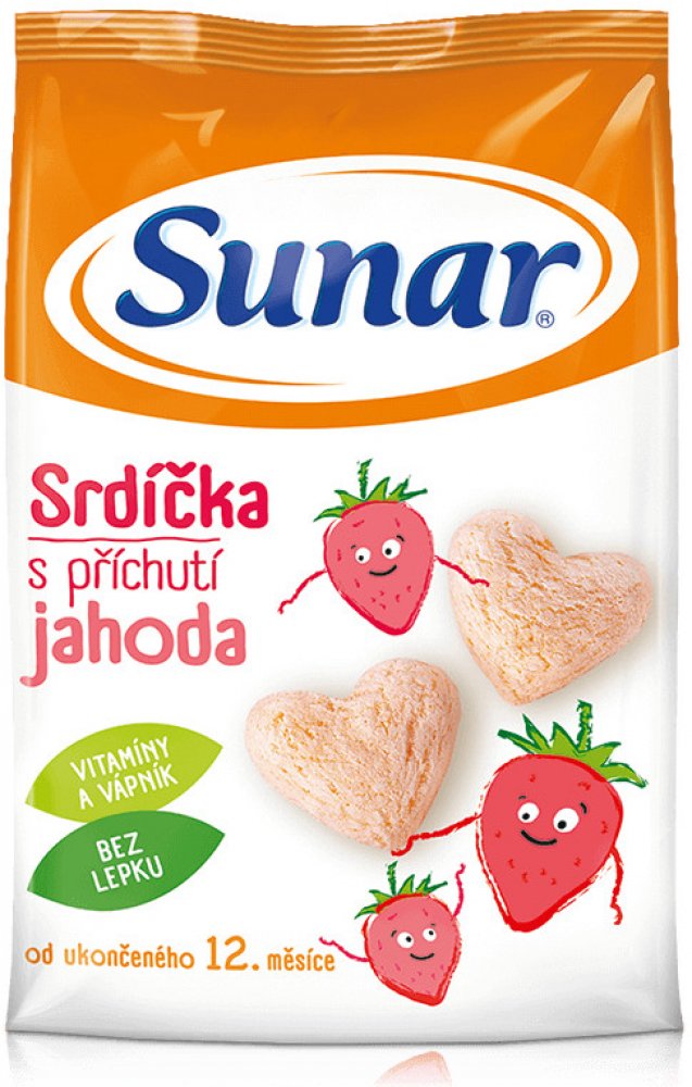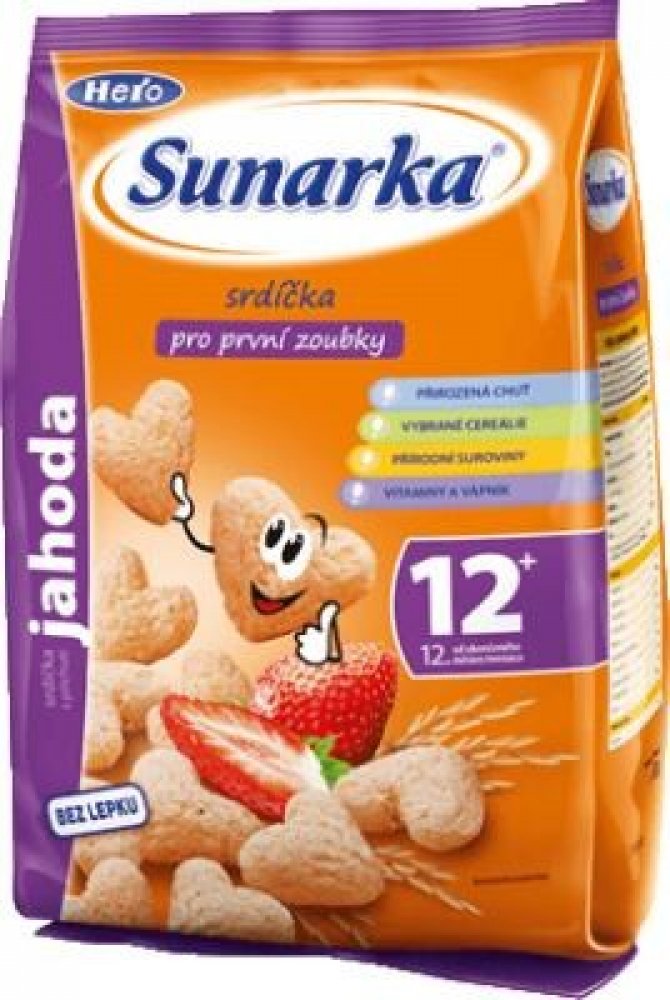 POPIS PRODUKTU Jahodové křupky obohacené o vitamín B1 a vápník. Potravina pro obilnou výživu kojenců a malých dětí od ukončeného 12. měsíce Snacky jsou skvělým obohacením jídelníčku malých dětí. Díky svým tvarům a lahodné jemné chuti jsou chutnou svačinkou pro první zoubky a veselé křupání. Velikost a tvar snacků je přizpůsoben dětským ručičkám, takže dítě je snadno uchopí a rozvíjí tak svoji zručnost a koordinaci pohybů. Zároveň pomáhají učit děti lépe konzumovat a žvýkat větší kousky. Přirozená chuť Vynikající chuť Sunarka snacků je dána jejich složením a přirozeným obsahem pečlivě vybraných obilovin. Vybrané cereálie Sunarka snacky jsou vyrobeny z kukuřice a rýže a jsou přirozeně bezlepkové. Přírodní suroviny Snacky Sunarka jsou vyráběny z vysoce kvalitních a přísně kontrolovaných přírodních surovin bez použití konzervačních látek a barviv*. Vitaminy a vápník* Sunarka snacky obsahují potřebné vitaminy a vápník. Vápník je potřebný pro normální růst a vývin kostí u dětí. 1 porce 20 g (cca 40 ks snacků) obsahuje 89 mg vápníku (22 % referenční hodnoty). * V souladu s legislativními požadavky. Upozornění Obsahují cukr, proto by měly být pro dítě jen zpestřením. Podávejte pod dozorem maminky, aby nezaskočilo. VÝROBCE HERO CZECH s.r.o., Praha 5, Radlická 751/113e, PSČ 15000 SKLADOVACÍ PODMÍNKY Otevřené balení vždy dobře uzavřete, uložte na suchém a tmavém místě a spotřebujte do 2 dní. Uchovejte na suchém místě při pokojové teplotě. Neskladujte v chladničce.