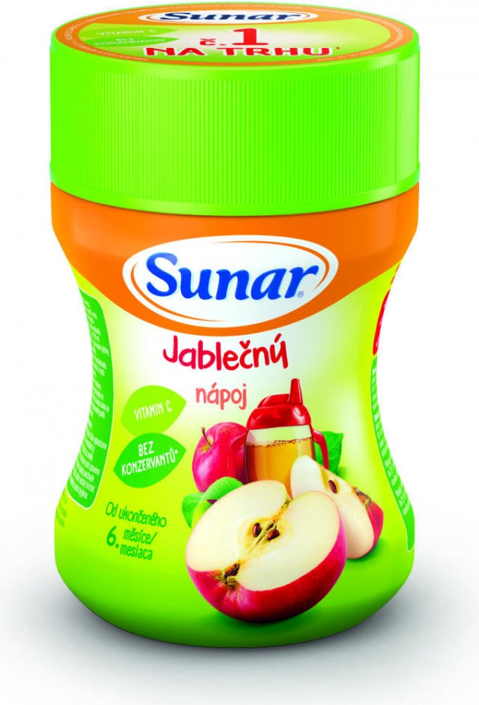 Sunar rozpustný nápoj s příchutí jablka je obohacený o vitamin C a neobsahuje žádné konzervační látky ani barviva. Osvěžující instantní nápoj vhodný pro děti od ukončeného 6. měsíce.