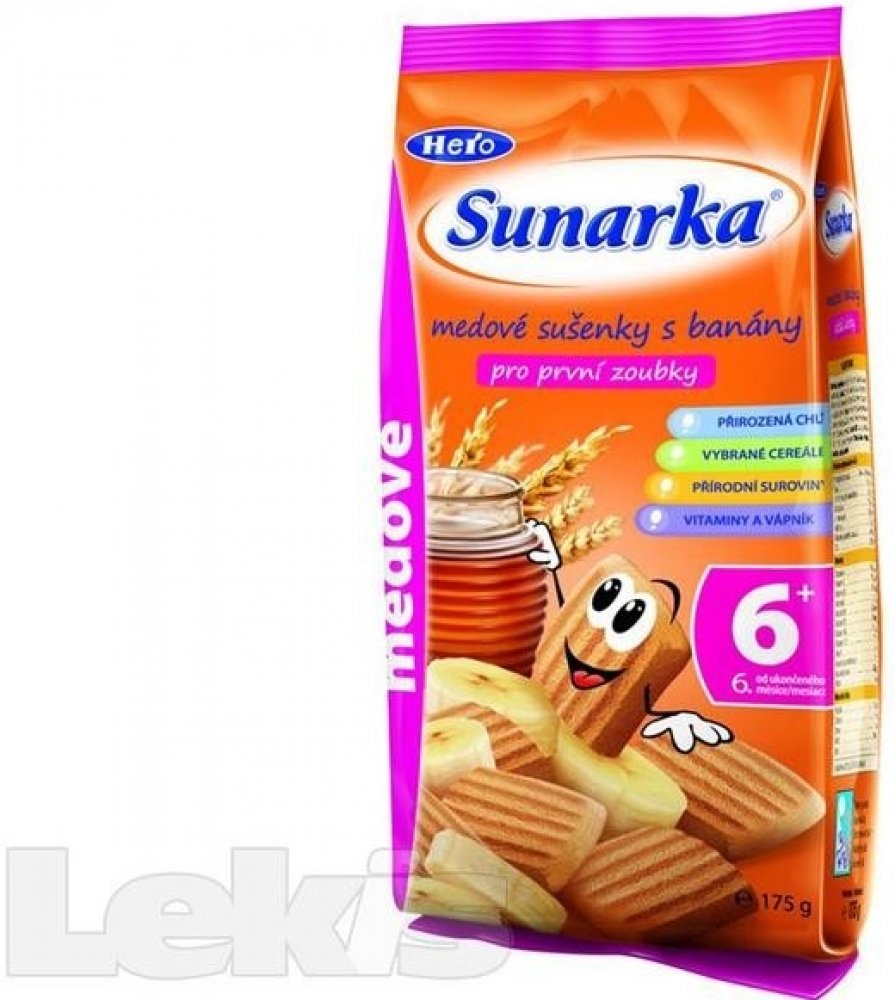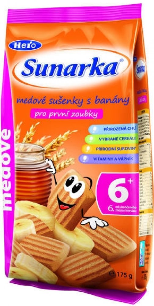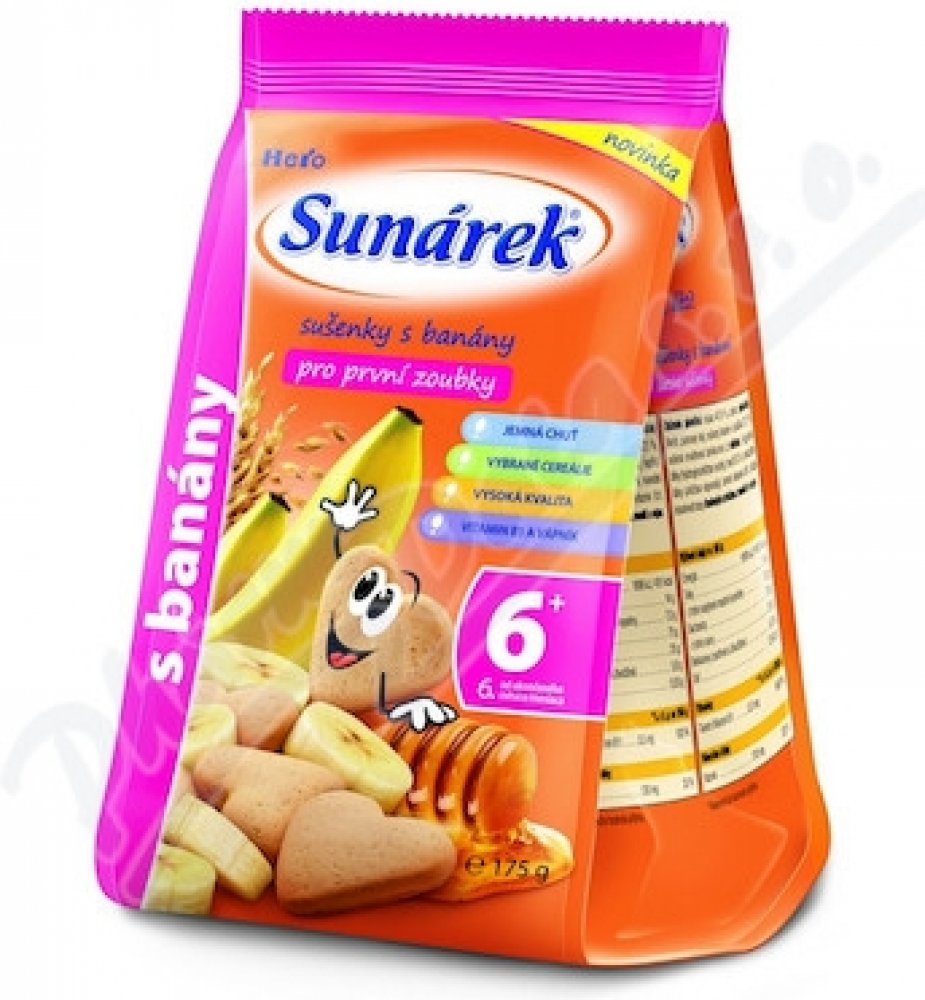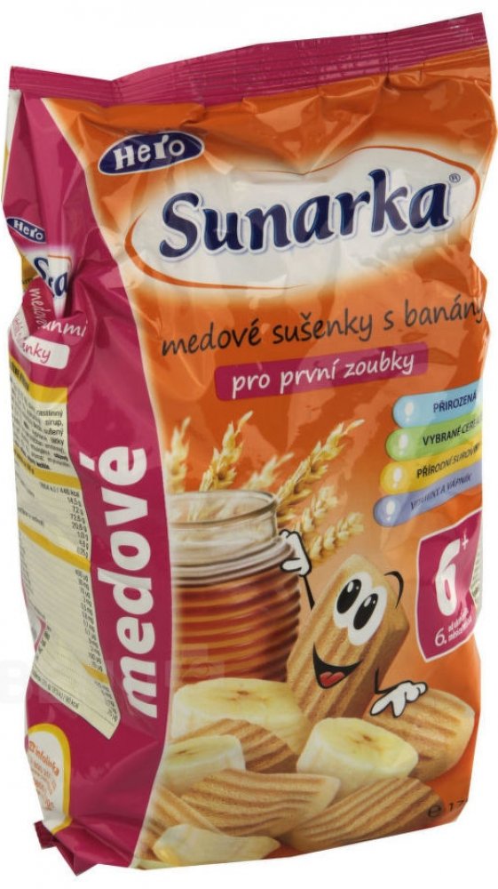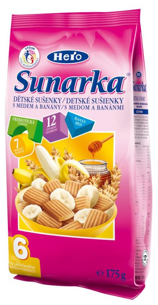 Dětské sušenky Sunarka jsou určeny dětem od ukončeného 6. měsíce věku v rámci smíšené stravy. Obsahují prebiotickou vlákninu (inulin), která podporuje rozvoj zdravé střevní mikroflóry a vstřebávání vápníku. Zlepšuje trávení dítěte a zároveň posiluje jeho imunitní systém a obranyschopnost. Dětské sušenky Sunarka jsou také obohaceny komplexem všech významných vitaminů a sedmi minerály, které se...