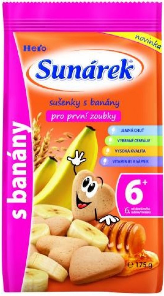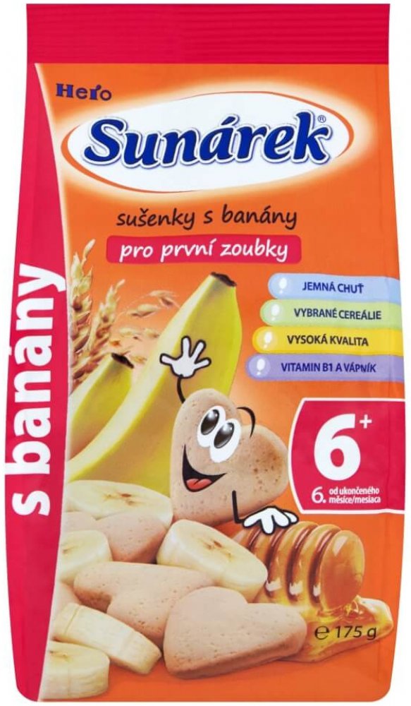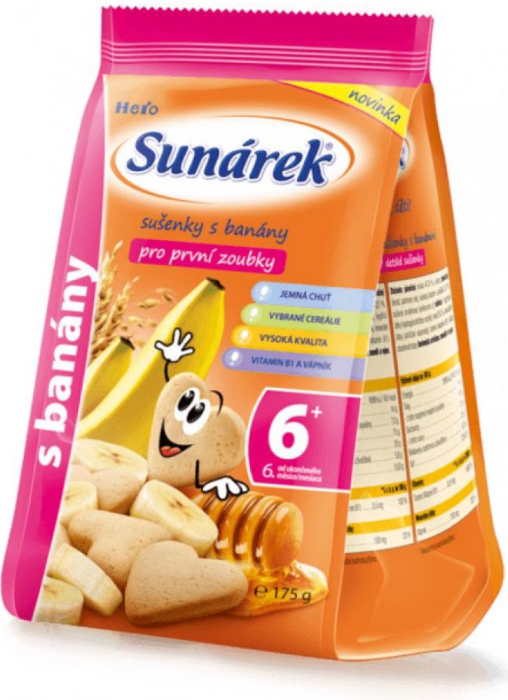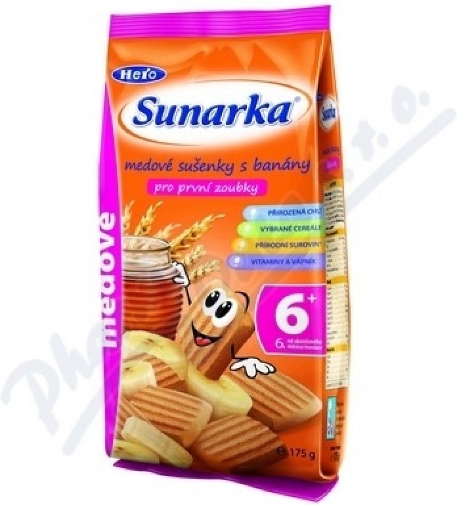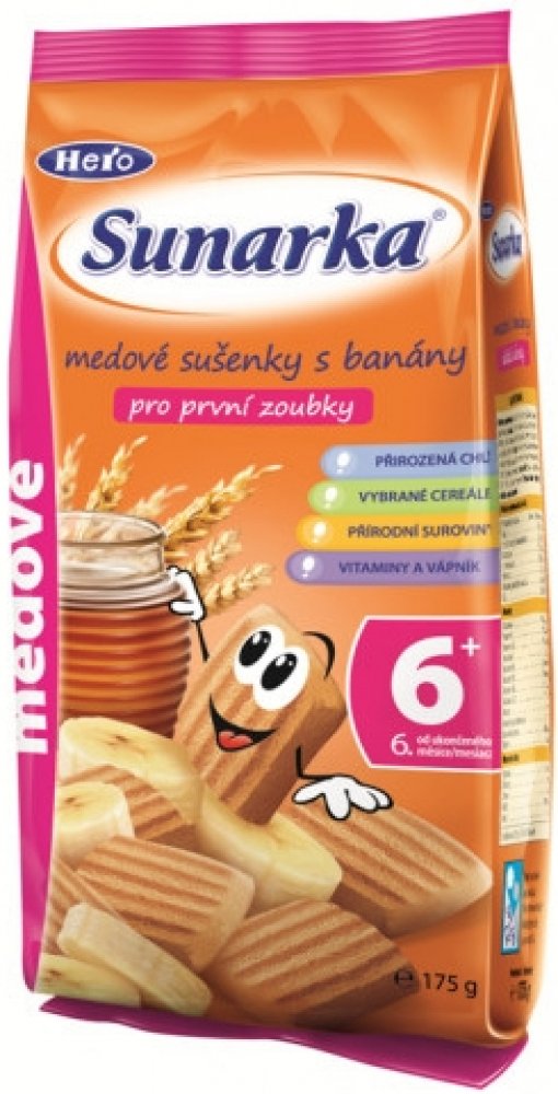 Dětské sušenky Sunarka jsou určeny dětem od ukončeného 6. měsíce věku v rámci smíšené stravy. Obsahují prebiotickou vlákninu (inulin), která podporuje rozvoj zdravé střevní mikroflóry a vstřebávání vápníku. Zlepšuje trávení dítěte a zároveň posiluje jeho imunitní systém a obranyschopnost. Dětské sušenky Sunarka jsou také obohaceny komplexem všech významných vitaminů a sedmi minerály, které se...