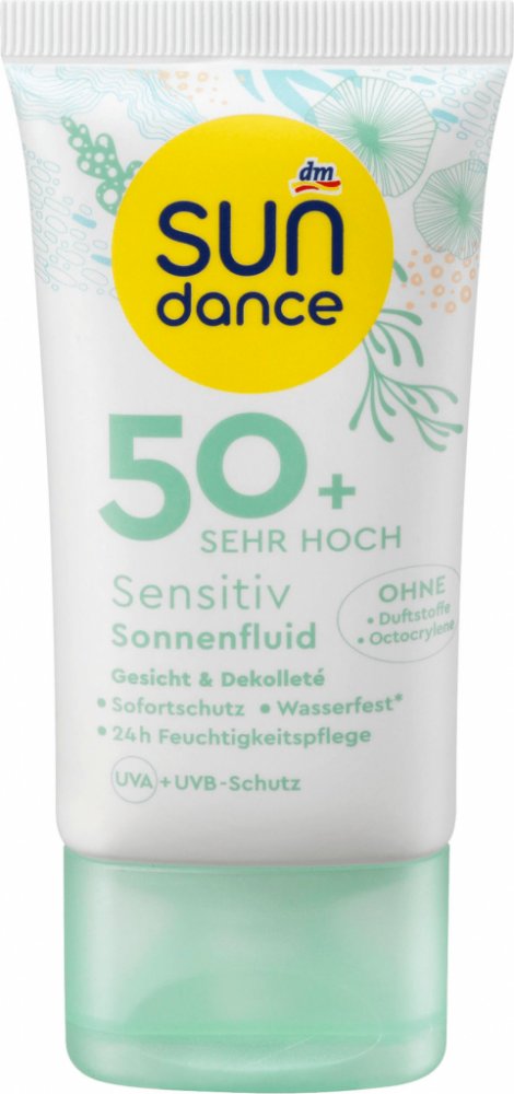 SUNDANCE Sensitiv fluid na opalování OF50+ je vhodný pro obličej a dekolt. Dodává okamžitou a spolehlivou ochranu před slunečními paprsky. Fluid je vhodný také jako podklad pod make-up a jeho složení je voděodolné, veganské a bez obsahu vonných látek.