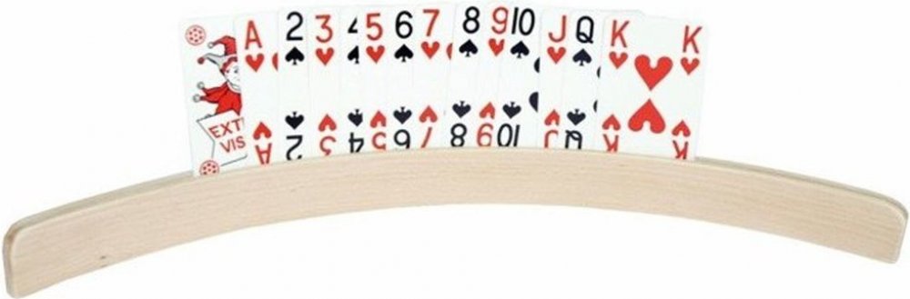 Velmi pěkně navržený stojánek na hrací karty, pomáhá všem vášnivým ale i příležitostným hráčům karet, kteří mají jen malou sílu v rukou a nemohou tak udržet karty během hry. Stojánek je vyroben ze dřeva a je díky lehkému zahnutí stabilní. Velikost 35 cm / 50 cm.