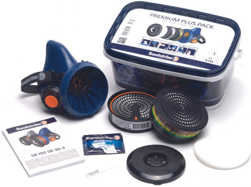 Polomaska SR 100 / SR 510 P3 R částicový filtr / plynový filtr SR 297 A1 / předfiltr / držák předfiltru / čisticí hadřík.