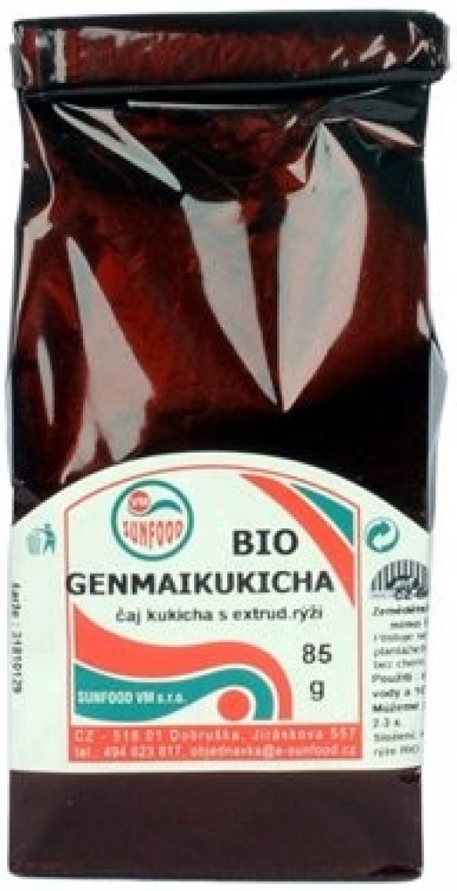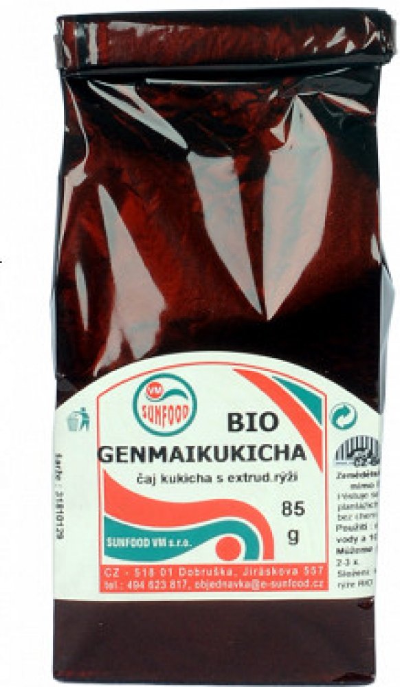 Čaj kukicha s praženou hnědou rýží z Japonska. Výrobek je certifikován u kontrolní organizace ABCERT AG, registrační číslo CZ-BIO-002. Složení: čaj kukicha, rýže z kontrolovaného ekologického zemědělství Obsah: 85 g Země původu: Japonsko Skladujte v suchu, chraňte před teplem. Minimální trvanlivost vyznačena na obalu. Výrobce: SUNFOOD VM s.r.o., Jiráskova 557, 518 01 Dobruška Prodejce: DUMBYLINEK....
