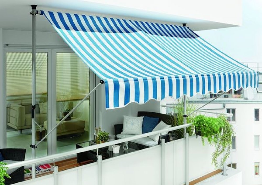 Sunfun 24862282 Rozpěrná markýza, modro-bílá, 2,5 x 1,3 m