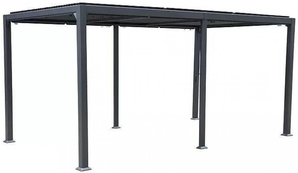 Moderní pergola s nastavitelnou střechou Cannes XXL značky Sunfun je ideální pro pohodlný odpočinek na zahradě. Dokonalou stabilitu pergoly zajišťuje robustní hliníková konstrukce, která chrání pergolu před povětrnostními vlivy a korozí a zvládne unést zátěž až 110 kg/m². Střešní lamely lze pohodlně nastavovat pomocí kliky a kdykoliv tak upravit množství pronikajícího slunečního světla a přizpůsobit se jakémukoliv počasí. Pergola je dodávána s integrovaným okapem k odvodu dešťové vody a bez bočních stěn či dekorací. Údržba pergoly je díky vhodně zvolenému materiálu zcela nenáročná.