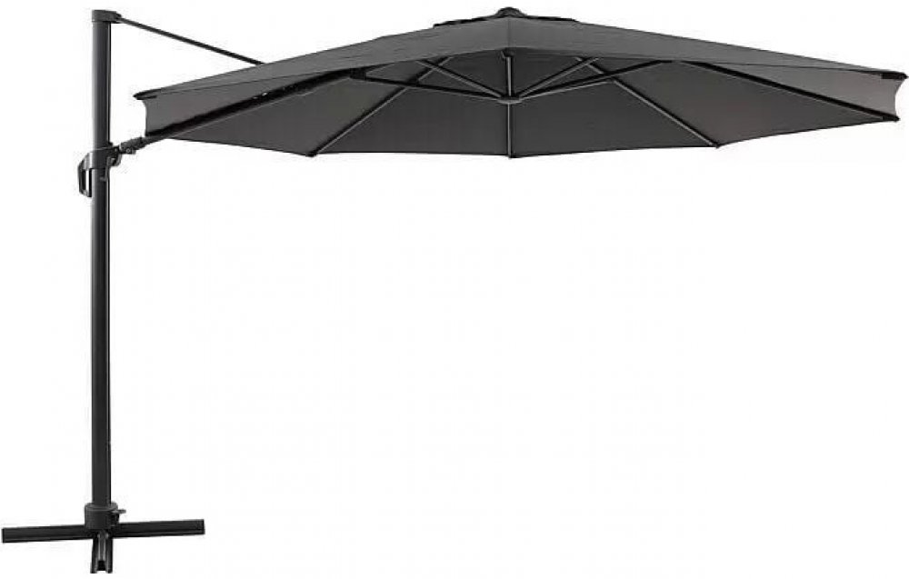 Designový závěsný slunečník Melina od značky Sunfun v moderním tmavě šedém odstínu z vysoce kvalitní polyesterové tkaniny poskytuje nejvyšší možnou ochranu proti přímému slunečnímu záření. Potah slunečníku je vyroben z lehkého polyesteru 300 g/m² s ochranou UV 50+, která blokuje přes 98% UV záření. Díky kvalitnímu zpracování je povrch slunečníku voděodolný, odolný vůči nečistotám a je možné jej jednoduše umýt i v ruce. Práškově lakovaná konstrukce odolává korozi a opotřebení a je opatřena kličkou pro snadnou manipulaci se slunečníkem. Lze ho jednoduše otáčet o 360 °, vysouvat či naklánět v závislosti na poloze slunce. Křížová základna bez zátěžových desek je součástí.