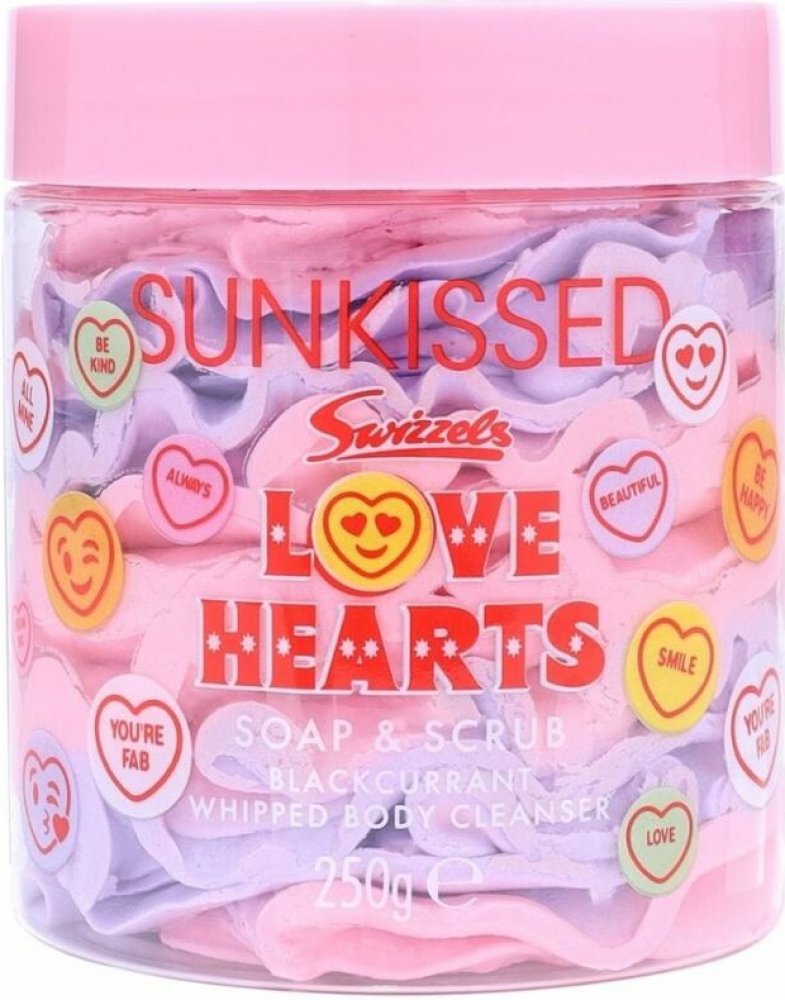 Sunkissed Soap & Scrub Whipped Body Cleanser Love Hearts Blackcurrant je luxusní tělový čisticí krém se dvěma tóny a nadýchanou, šlehanou texturou, která povznese tvou každodenní péči o těloVeganské složení s hydratačními účinky a certifikací PETA jemně čistí a exfoliuje pokožku, aniž by ji vysušovalo. Pleť po použití zůstává hebká, vyživená a svěží. Sladká, ovocná vůně bonbonů Love Hearts v kombinaci s lehce kyselkavým černým rybízem promění každou sprchu v hravý a hýčkavý rituál, po kterém bude tvá pokožka neodolatelně vonět✨