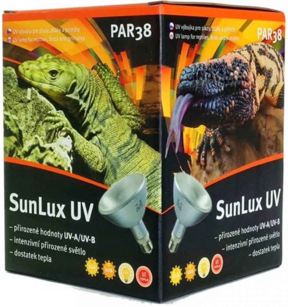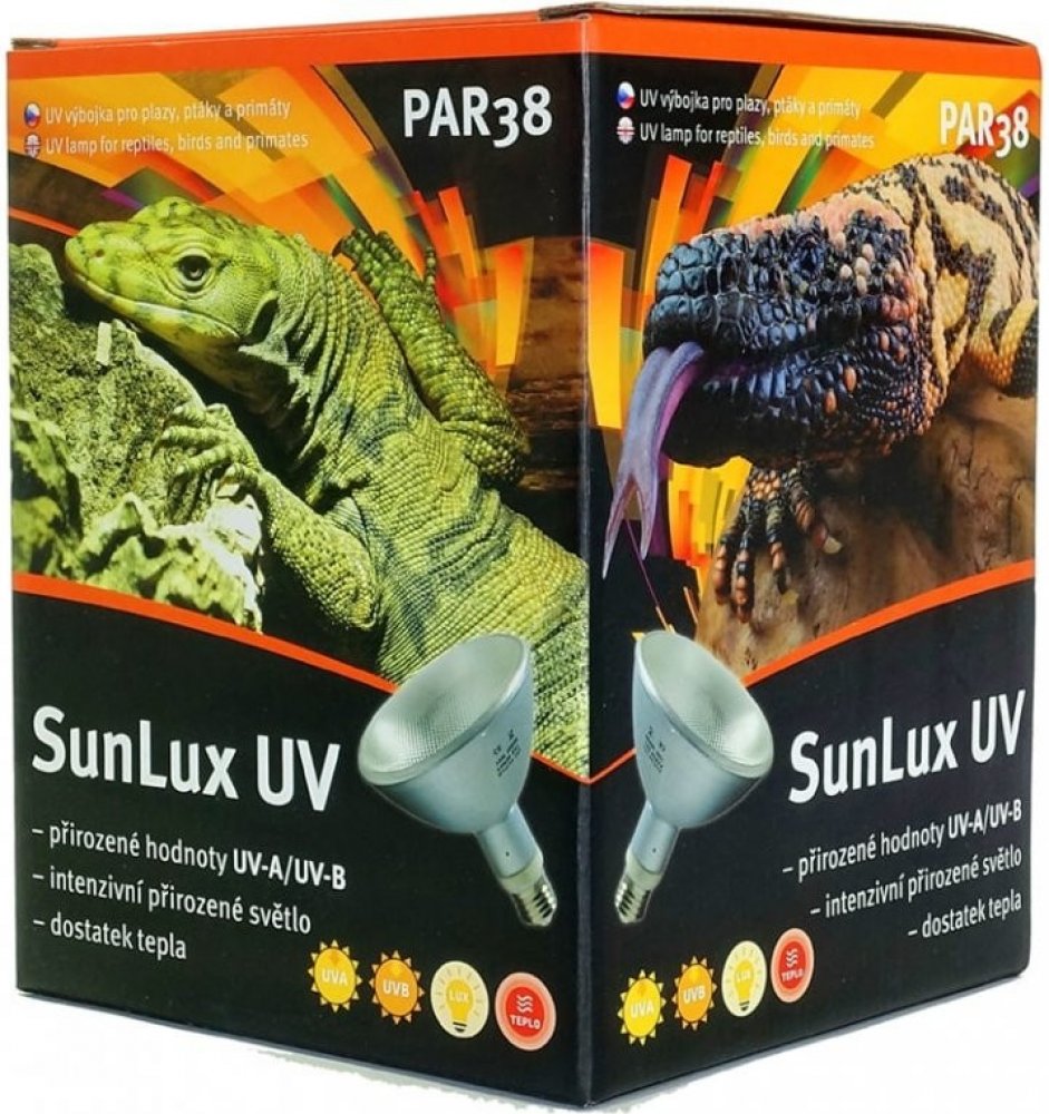 Halogenidová technologie UVB výbojek SunLux UV zaručuje plazům plné viditelné spektrum ve vysoké intenzitě, která je pro chov tzv. „sluncemilných“ plazů naprosto zásadní. Dostatečná intenzita světla blahodárně působí na psychiku zvířat, která je velmi úzce spjata s následnou zdravotní kondicí chovaných plazů. Toto v současnosti žádný jiný dostupný kompaktní zdroj k osvětlení terárií nabídnout v dostatečné míře nemůže.