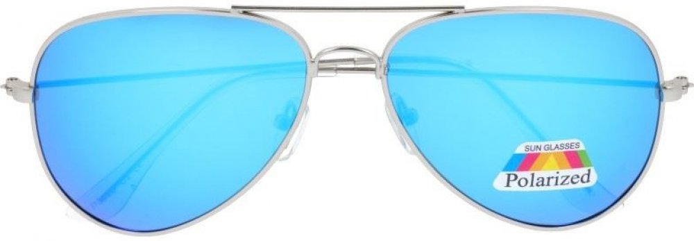Světle modré polarizační brýle pilotky "Polar Aviator" se zrcadlovými skly se stříbrným rámem, UV filtrem + 2 dárky látkový obal a hadřík ZDARMA!