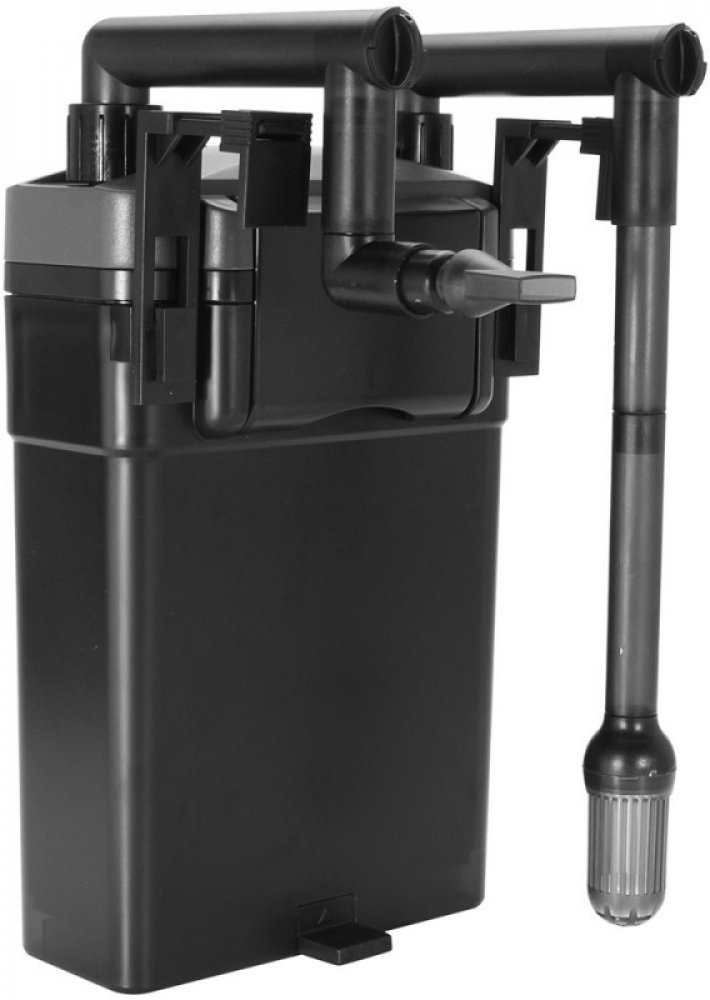 Instalace: Filtr se umístí na okraj nádrže pomocí speciálních držáků. Tyto držáky mají nastavitelnou šířku, čímž je umožněno zavěšení za sklo o tloušťce od 4 mm do 20 mm. Speciální spodní nástavec pak drží filtr vertikálně. Nástavec je vyroben z pružné a měkké gumy, která tlumí vibrace způsobené průtokem rotoru a vody, což činí filtr velmi tichým.