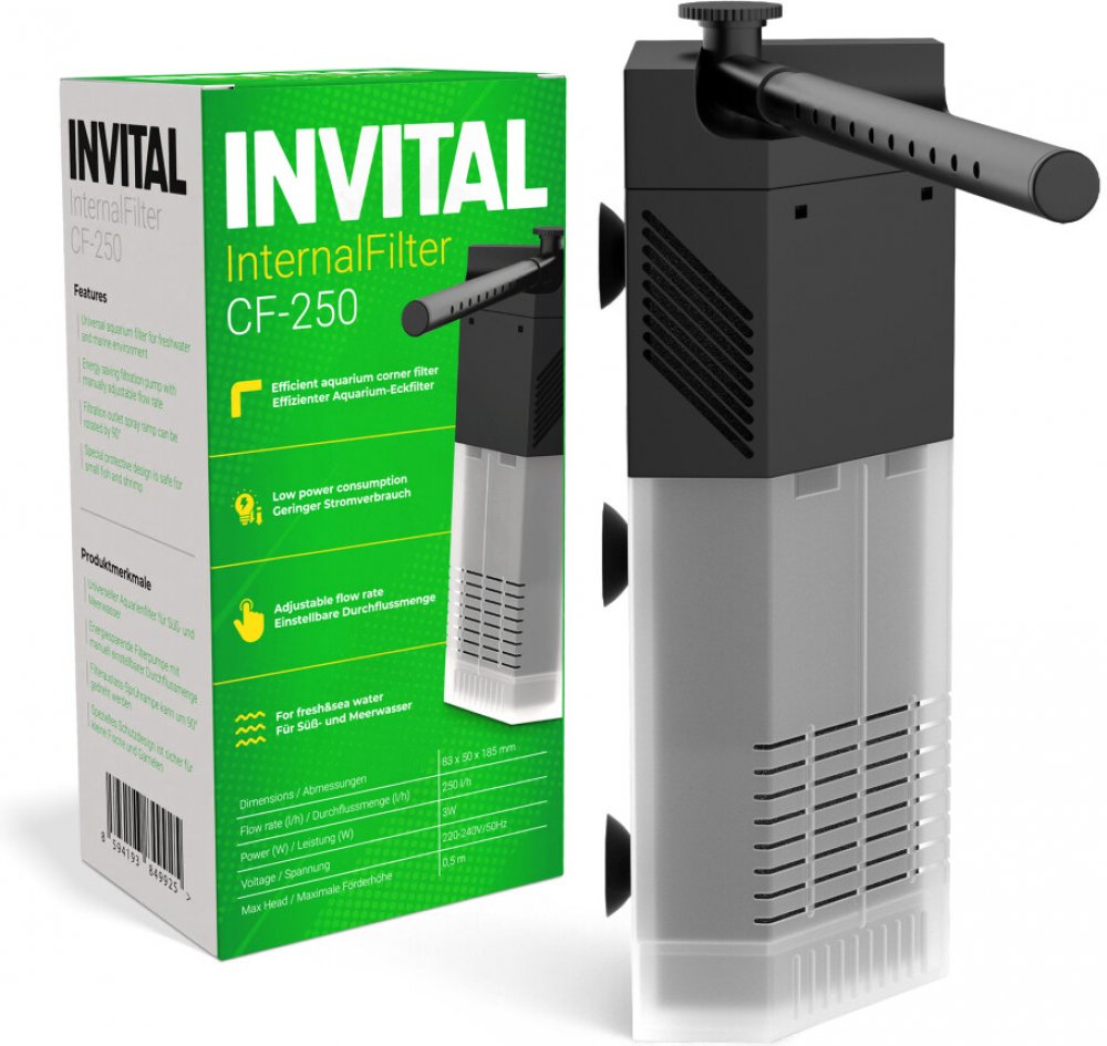 Hlavní specifikacenenápadný rohový designvelký objem pro filtr. Médiaplná regulace výkonurozstřikovací rampa součástí balenífiltrace je, z důvodu použití nerezové osičky, vhodná pro rostlinná i mořská akvária. Výtok není fixovaný na jednu pozici, je možné jej otáčet na obě strany. Technické parametry ♂️♀️rozměryvýkonnapětíodběr8 x 5 x18,5 cm250 l/h220-240v/50hz3w
