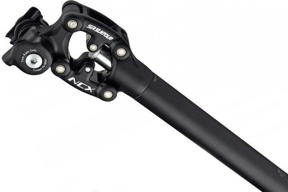 Kvalitní odpružená sedlovka SR Suntour NCX s 50mm zdvihem.