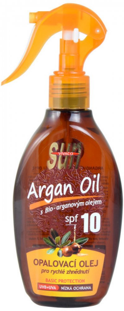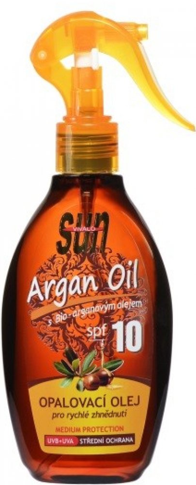 Opalovací olej s komplexním UVB + UVA faktorem poskytuje ochranu před spálením a předčasným stárnutím pokožky vlivem slunečního záření. Vzácný arganový olej chrání pokožku před vysoušením a urychluje její zhnědnutí. Aplikace oleje je velmi jednoduchá díky balení s praktickým rozprašovačem.