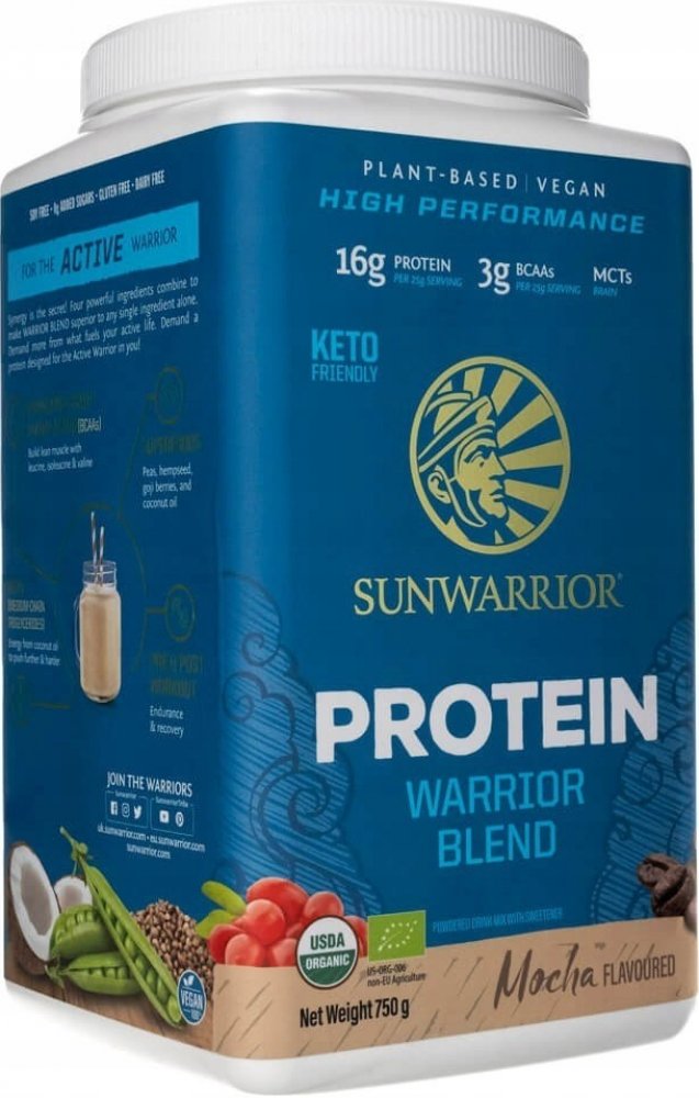 Sunwarrior Blend spojuje a násobí sílu několika bohatých zdrojů bílkovin do jedné jemné, skvělechutnající formule, která je celkově chutnější než jednotlivé složky zvlášť. Středně dlouhé řetězce trygliceridů z kokosu dotváří toto dynamické spojení, jehož podstatou je unikátní, raw, rostlinný protein s kompletním aminokyselinovým složením, mimořádně bohatý na arginin, lysin, leucin a aminokyseliny s rozvětveným řetězcem.