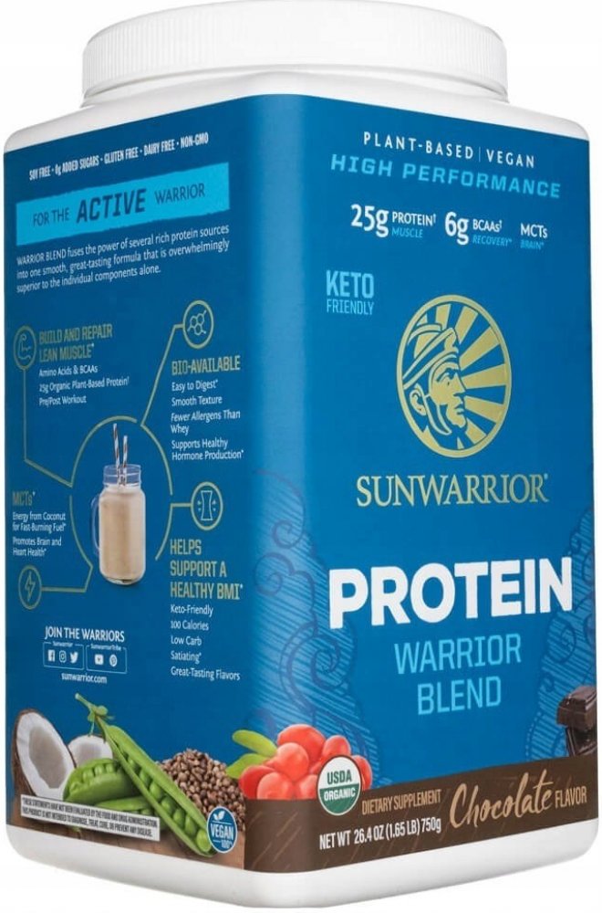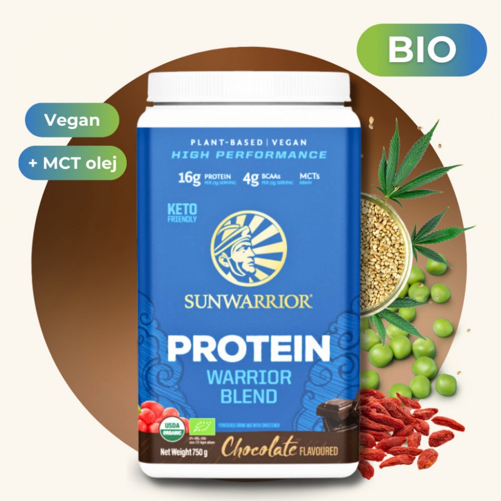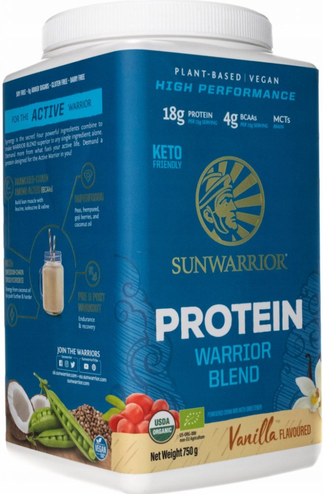 Sunwarrior 750 g rostlinné práškové 16.0 g 25.0 g 30 ks 90.0 kcal MCT olej, stévie, guar hráškový protein, konopný protein, kustovnice