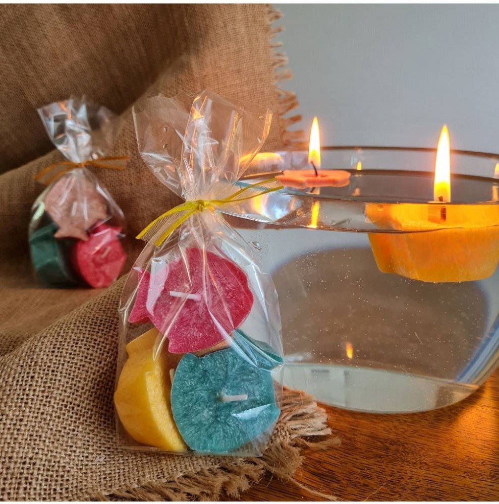 Balíčky s plovoucími svíčkami patří k nejoblíbenějším z naší nabídky, velkou výhodou totiž je, že neskončí jen tak někde ve skříni jako klíčenka či jiný přívěsek. Jejich zapálením vykouzlíte příjemnou atmosféru, navodíte pocit tepla a rázem je pro všechny svět o něco krásnější. Nepotřebujete žádnou speciální misku, vystačíte si i s obyčejnou skleničkou či sklenicemi na aperitiv, které plovoucím svíčkám vyloženě sluší.