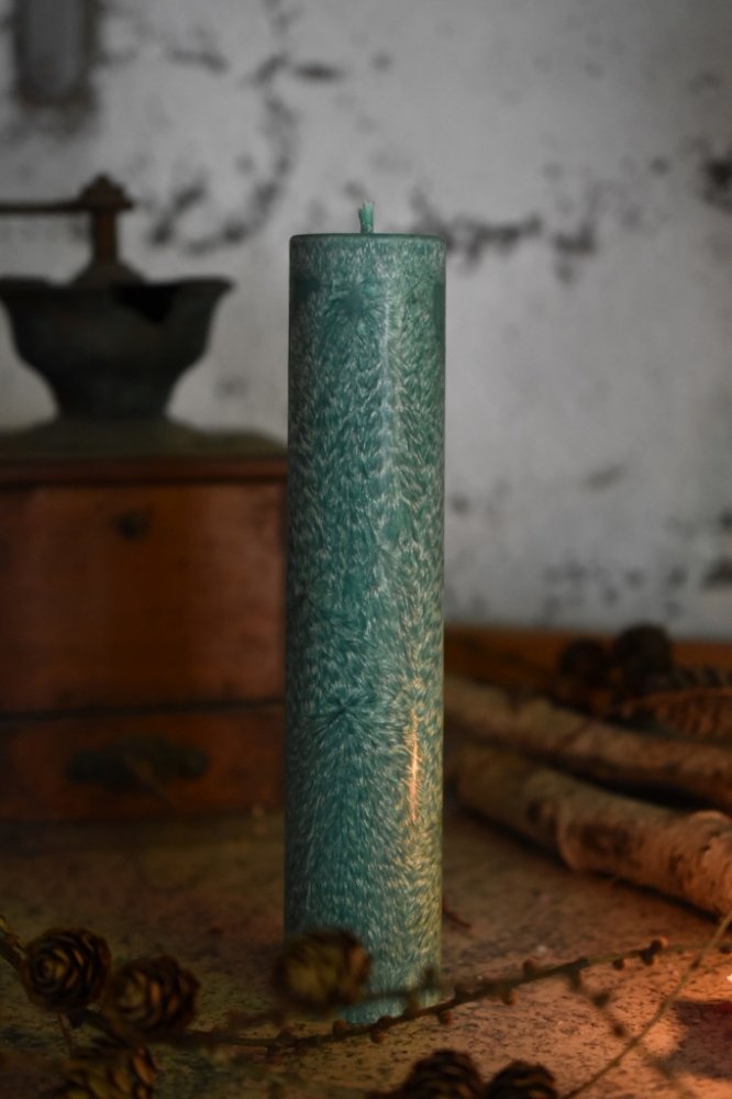 Svíčka, co má příběh. Od rozpuštění zrníček vosku procházela našima rukama až do své výsledné podoby a zabalení do balíčku. Každá je jedinečná, a to nejen díky "ledové" kresbě na povrchu.