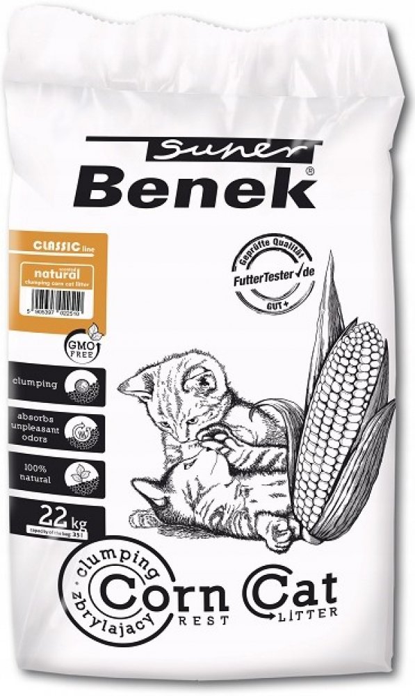 SUPER BENEK Corn Classic Kukuřičné stelivo pro kočky Přírodní, hrudkující 35 l