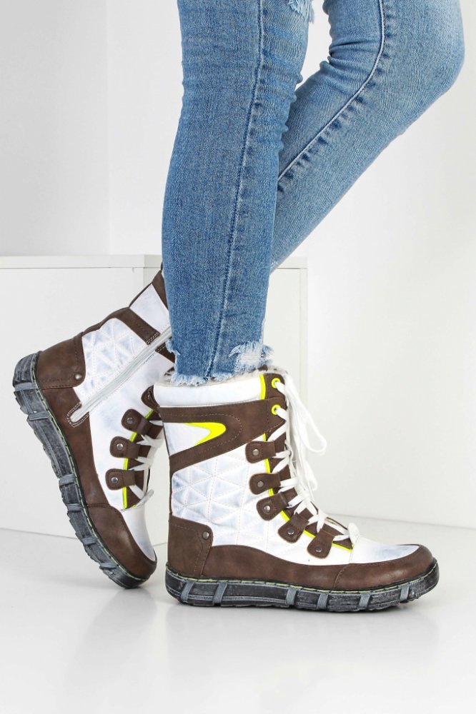 Zimní boty, které vám padnou do oka. Bude to láska nejen na první pohled, ale také na první obutí. Tento model je totiž pohodlný, má hrubší podrážku se vzorkem a boční zip díky kterému můžete na zdlouhavé šněrování zapomenout a boty obouvat jen s jeho pomocí. Vnitřek bot je zateplen včetně stélky hrubým světlým kožíškem a tak se na vás zima nemá šanci dostat. Od země bude chlad izolovat hrubší podrážka a o příjemné teplo v botách se postará kožíšek. Dokonale vypadají boty po designové stránce, mají vkusnou kombinaci barev, moderní prošívání a taky lehkou patinu v modrém odstínu.