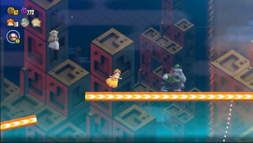 Na výběr dostanete ze známých postav jako Mario, Luigi, Peach, Daisy, Yoshi či Toad. Maria můžete přeměnit do jeho sloní podoby a poradit si s nepřáteli díky novému power-upu!