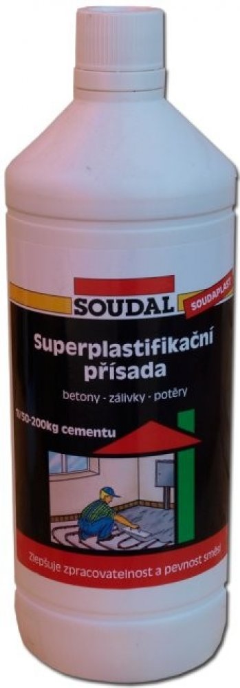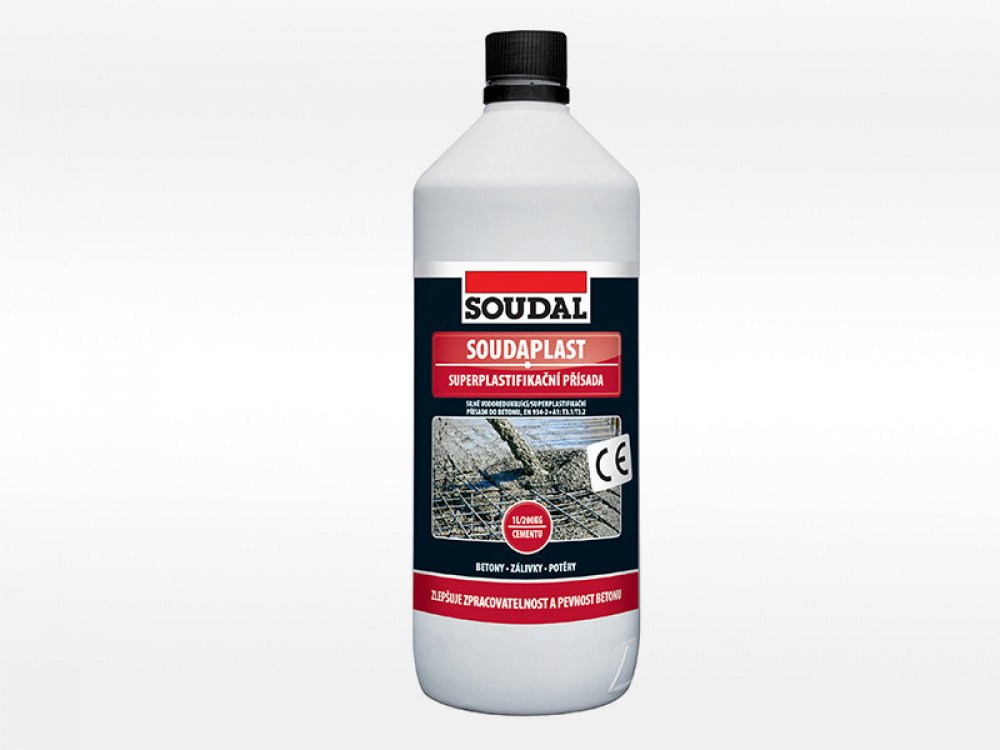 Přísada superplastifikační SOUDAL Soudaplast 1 l. SOUDAL Soudaplast je přísada pro zlepšení zpracovatelnosti a pevnosti betonu. Má silný ztekucovací a dispergační účinek.