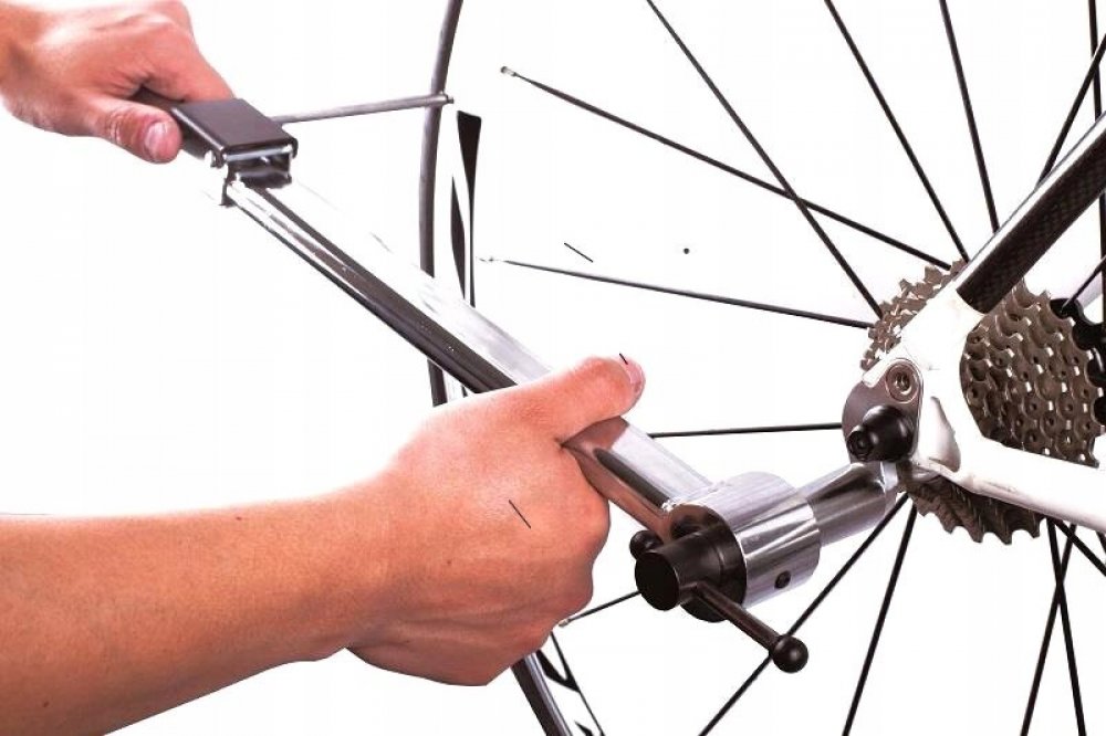 dle nastavitelného trnu zjistíme rovnoběžnost patky k ráfku