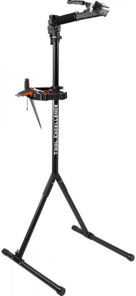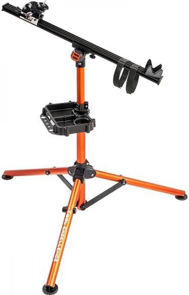 Skládací montážní stojan vhodný i pro elektrokola. Skládací montážní stojan s rychloupínací hlavou vhodný i pro elektrokola. Hlava otočná o 360° Max.zatížení: 40kg Výšková nastavitelnost: 135 - 175 cm - robustní konstrukce dovolující použití i pro elektrokola - sklopná rychloupínací hlava i sklopné nohy pro snadnou manipulaci - nářadí na tácku není součástí dodávky