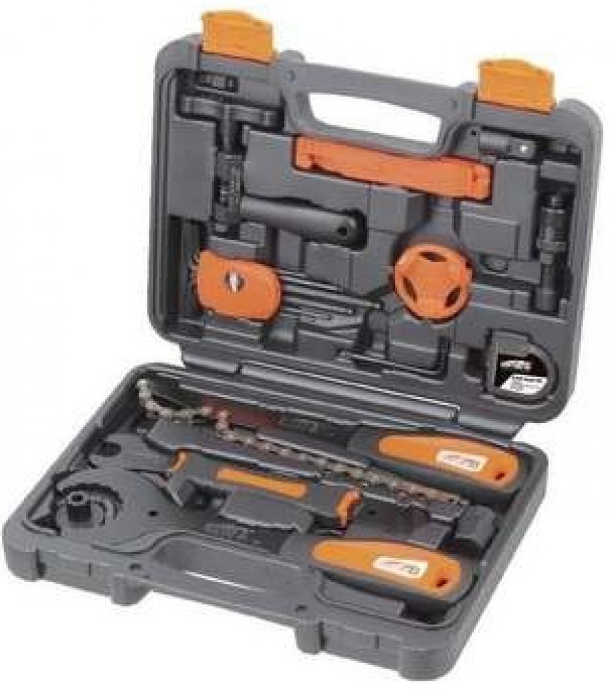 21-dílná sada nářadíObsah: - stahovák na kazety- čtyřhran 1/8"- klíč na hollowtech TB-8919- šroub pro dotahování axiální vůle klik Shimano- pedálový klíč 15mm s imbusy 8 a 10mm- nýtovač 8, 9, 10 speed- sada imbusů 2; 2,5; 3; 4; 5 a 6mm- sada samolepících záplat- centrovací klíč 3,2; 3,3; 3,5mm- adaptér, 8mm imbus x 1/2" čtyřhran- torx T25- 3x plastová montpáka- univerzální stahovák na kliky
