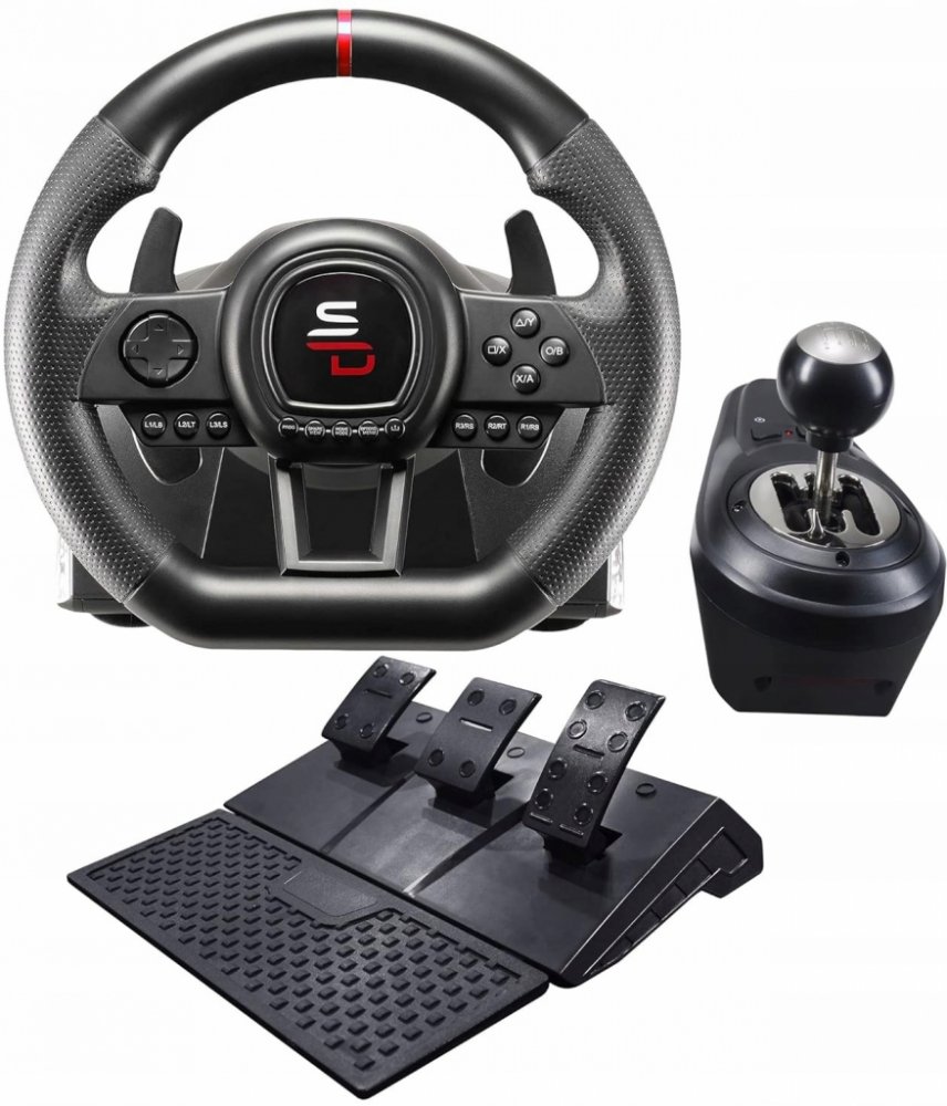 Závodní volant SUPERDRIVE GS650-X s pedály, spojkou i s řadicí pákou Pro náruživé hráče automobilových simulátorů zde máme připravený volant SUPERDRIVE GS650-X. Je kompatibilní s PS4, Xbox Series X/S a Xbox One. Volant disponuje otáčením v rozmezí 270°. Je tedy vhodný zejména pro závodní hry.