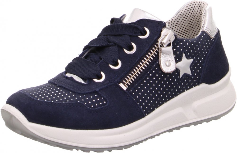 Dívčí celoroční kožená teniska v modré barvě, model Superfit® MERIDA HS se zavazováním na tkaničky a praktický bočním zipem.