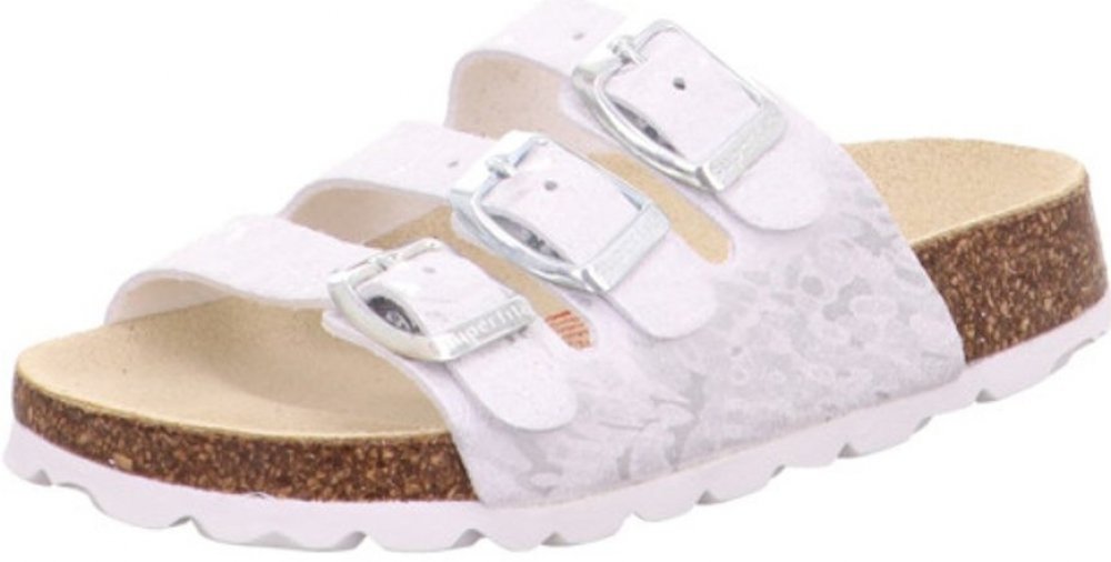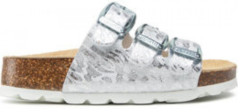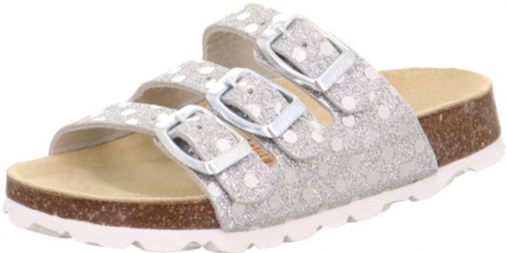 Superfit stříbrná pantofle pro holky kůže,korek letní