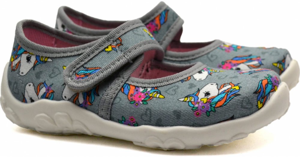 Dívčí balerínkové bačkůrky (domácí obuv) se zapínáním na suchý zip, velmi pohodlné, lehké, ohebná podešev, střední střih, provětrávané do podešve. Mittel IV - střední střih