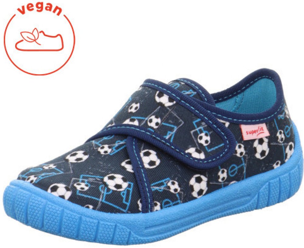 Superfit chlapecké papuče BILL Turquoise/Multicolored 1-000279-8080 | dětské přezůvky do školy na suchý zip | plátěnky bez klenby s flexibilní podrážkou Superfit chlapecké papuče BILL - veganské přezůvky do školy s fotbalovými motivy