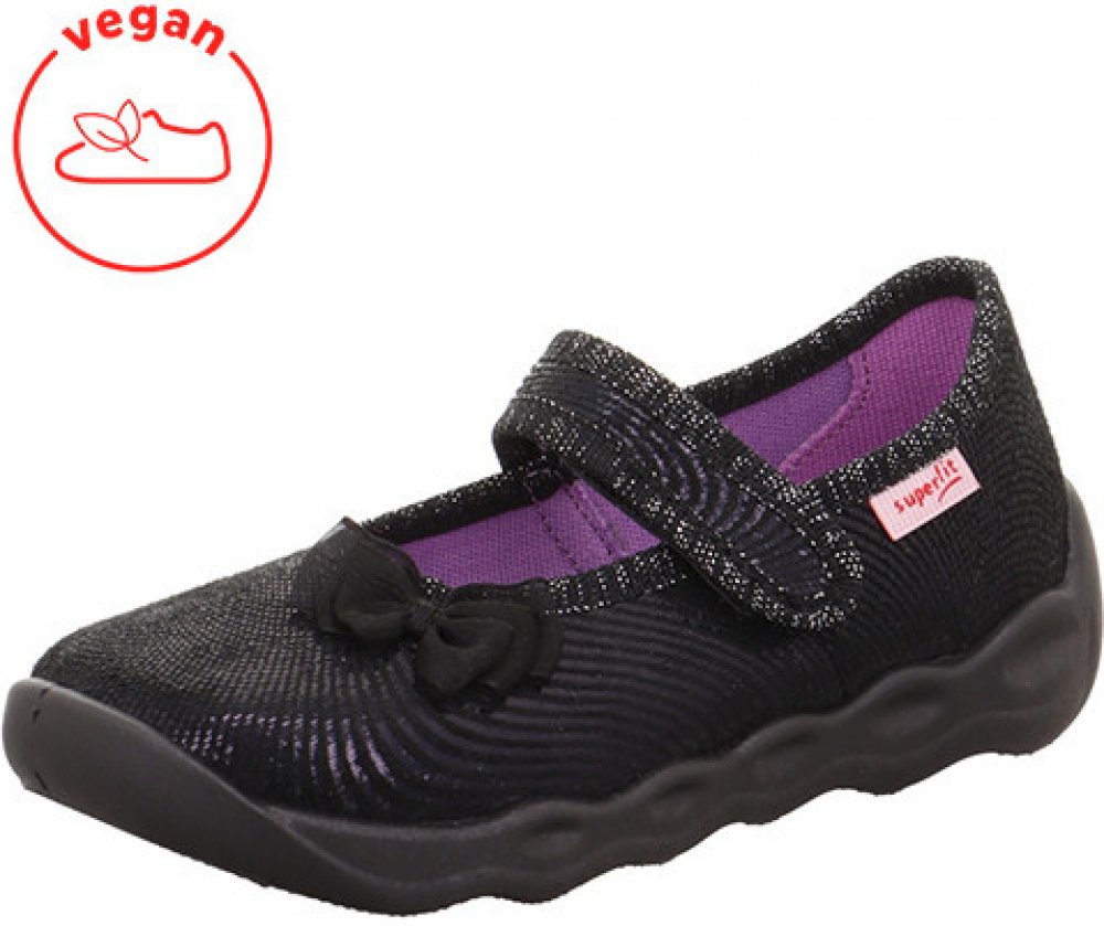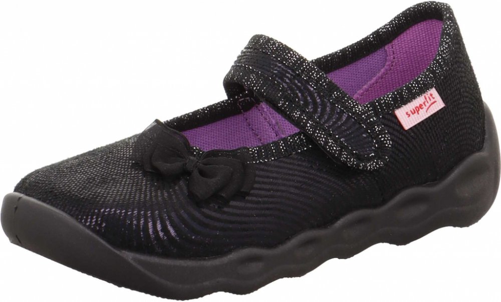 Dívčí balerínky Superfit Bubble 1-006271-0040 v elegantní černé se třpytkami, se zapínáním na suchý zip, díky kterému se dají krásně regulovat v oblasti nártu. Jsou vhodné i pro vyšší nárt. V okolí kotníku je mírné vykrojení a tím bota lépe padne. Dá se říct, že kotník zcela kopíruje a tím se bačkory opravdu pohodlně nosí. Využitelné i jako balerínky.