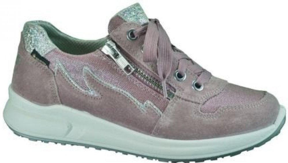 Nepromokavé sneakersy Superfit s bočním zipem a šněrováním v módní světle fialové lila barvě s jemným stříbrným třpytem. Celoroční dívčí obuv s gore-tex membránou nepromokne a díky módnímu designu je vhodná nejen ke kalhotám, ale i k sukni. Boty s pružnou podešví a pevným opatkem ve velikostní řadě 31 až 35. šíře obuvi M IV je určena pro střední nohu klasickou, kterou má cca 80% populace membrána ...