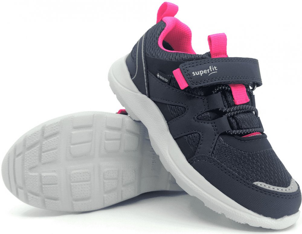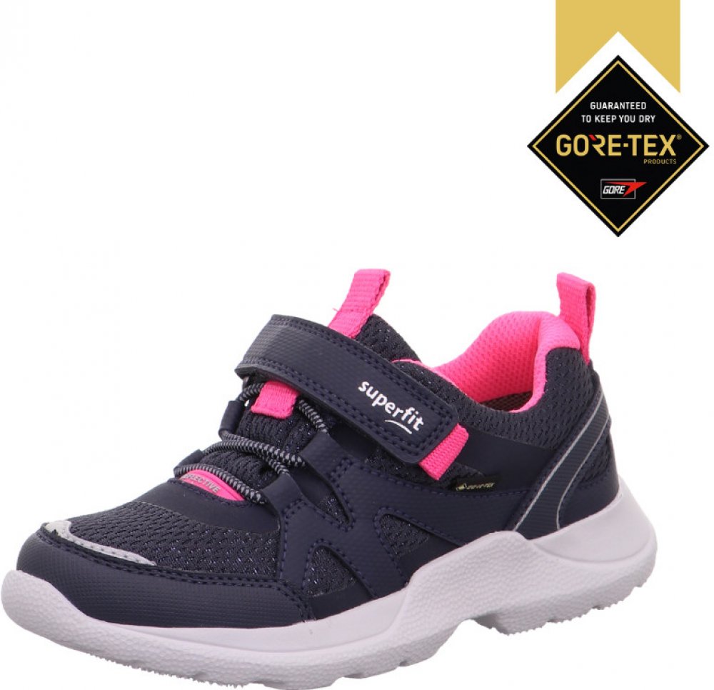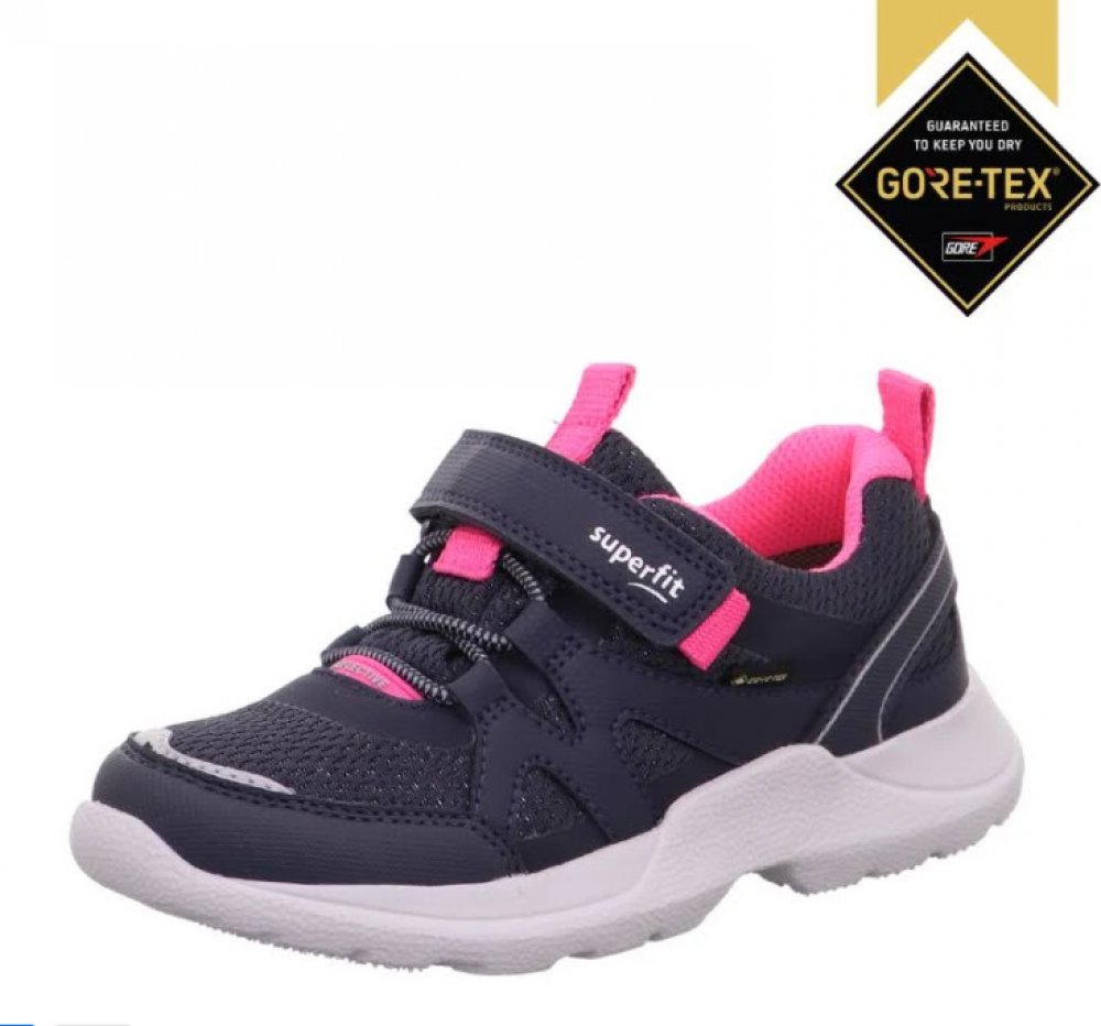 Celoroční krásná modro růžová dívčí teniska s GORE-TEX nepromokavou membránou, model Superfit RUSH se zapínáním na praktické gumičky a suchý zipy. Tenisky jsou ultralehké a kombinace bílé podešve z lehkého průžného materiálu Phylon a svršku ze směsi high-tech syntetického textilního materiálu dávají botě sportovní moderní vzhled. Pevný polstrovaný opatek zajistí správnou fixaci nohy. Membrána GORE-TEX reguluje teplotu, odvod vlhkosti a navozuje příjemný pocit sucha. Pro vytvoření ideálního klima a správné fungování membrány GORE-TEX , DOPORUČUJEME nosit do tenisek termoponožky a boty pravidelně impregnovat atestovanou IMPREGNACÍ. Tím docílíte nejlepšího výkonu membrány a užijete si tak bezchybné nošení tenisek.