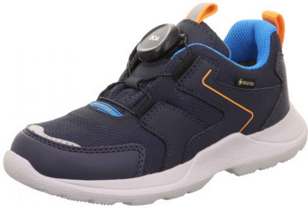 Celoroční dětská obuv rakouské značky Superfit s nepromokavou membránou GORE-TEX® a zapínáním BOA® Boty jsou vybaveny reflexními prvky, jsou extrémně lehké a vyrobené na středně široké chodidlo. Jednoduché a pohodlné zapínání BOA funguje na principu navíjení lanka na kolečko. Jednoduchým otáčením navíjejícího kolečka se lanko utahuje a díky tomu je noha rovnoměrně utažena. Výsledkem je vyšší stupeň pohodlí a utažená bota se navíc sama nepovoluje. Vytažením kolečka se naopak lanko uvolní. Hezky se přizpůsobí nártu a lze je snadno utáhnout tak, jak je potřeba. Tenisky mají velmi lehkou podešev s protiskluzovým vzorem. Svršek je z textilu, vnitřní část je také textilní a spolu s prodyšnou a nepromokavou membránou zaručují komfort prodyšných a suchých nožek. Boty mají polstrovaný pevnější opatek - pro lepší fixaci nohy, špička má pogumovaný okop. Vyjímatelná stélka je kožená. U značky Superfit je nadstandardně provedené spojení jazyku s pevnou části obuvi vložením GORE-TEX® látky, která zabraňuje vniknutí vody a nečistot do obuvi. Tenisky jsou vhodné pro běžné nošení i sporty.