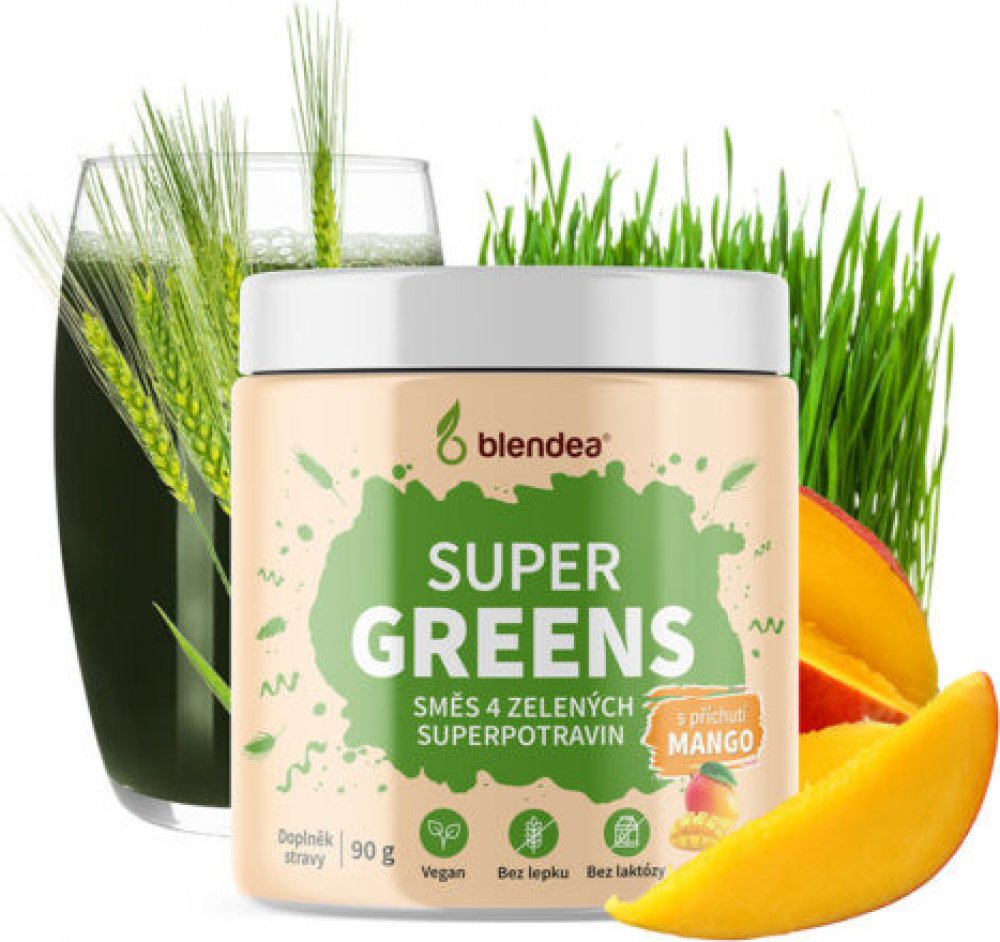 blendea sypké prášky trávení a zažívání unisex 90 g blendea pro dospělé perorální od 3 let mango Česká republika chlorella trávení, zažívání a detox s okamžitým účinkem 30 375.0 mg Ráno 1–2 lžičky (3–6 g) 1–2× za den Suché místo + pokojová teplota, Chránit před světlem/sluncem
