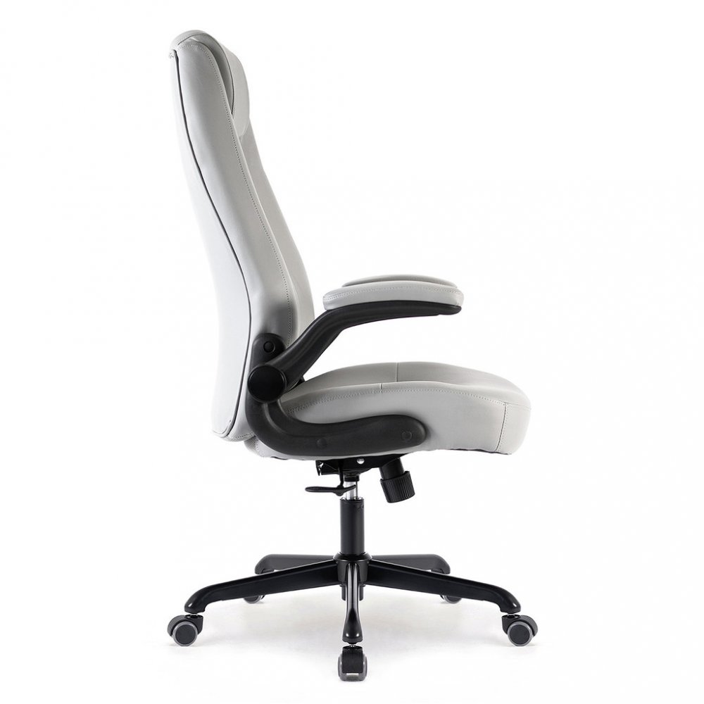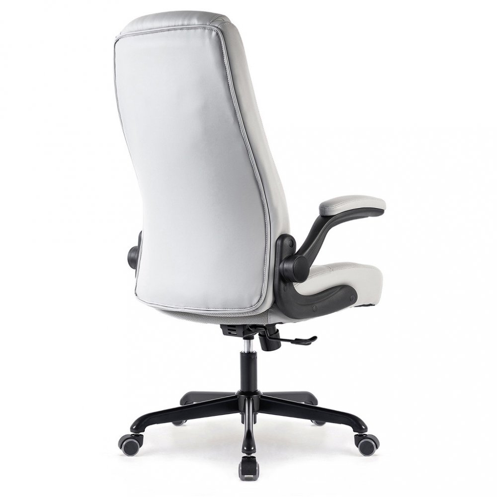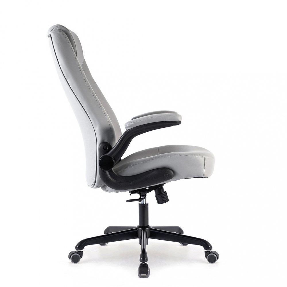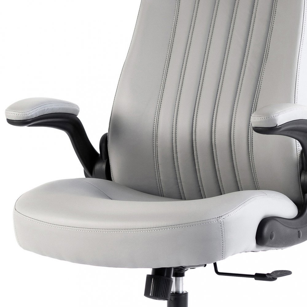 Kancelářské křeslo BOSTON s područkami je moderní křeslo s výjimečným polstrováním. Jeho hlavní předností je široký a pohodlný sedák. Ergonomicky tvarovaný opěrák je ideální pro správné držení těla bez nepříjemných bolestí zad. Je doplněný o zvýšenou opěrku hlavy. Křeslo vám poskytne pohodlné sezení na dlouhé hodiny. Své místo najde v každém interiéru, nebo kanceláři firmy. Potah křesla je z jemné a odolné umělé kůže světle šedé barvy se snadnou údržbou. Elegantní prošití vypadá fantasticky! Ruce si můžete položit na čalouněné područky, které se dají odklopit směrem nahoru. Svojí velikostí je vhodné pro osoby s výškou do 185 cm. Křeslo má kvalitní houpací mechaniku s nastavením síly houpání. Ta umožňuje změnit sklon křesla s aretací v několika polohách nebo si zvolit relaxační polohu (houpání). Síla houpání se reguluje v závislosti na váze uživatele velkým plastovým šroubem umístěným pod sedákem. Výška sezení se upravuje plynule páčkou. Je použitý kvalitní plynový píst s certifikátem BIFMA Class 3, černý kovový kříž má kolečka o průměru 50 mm pro všechny druhy podlah. Kancelářské křeslo má nosnost max. 130 kg, záruka 24 měsíců.