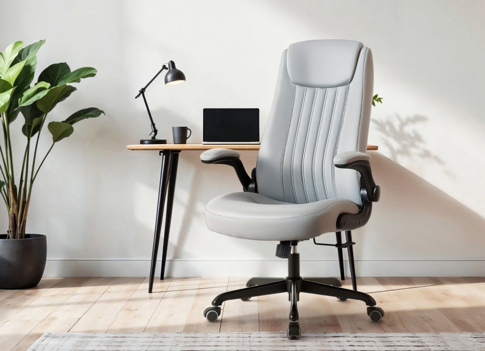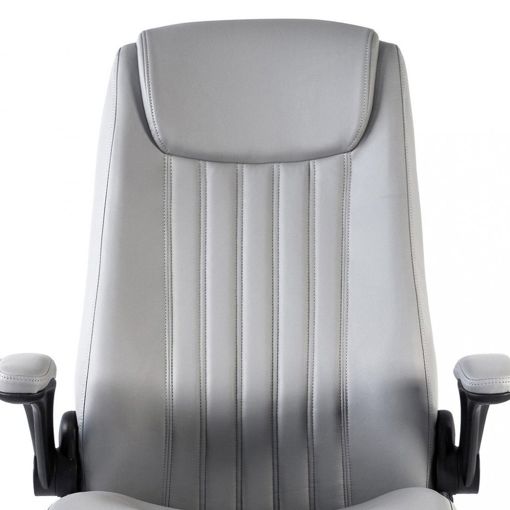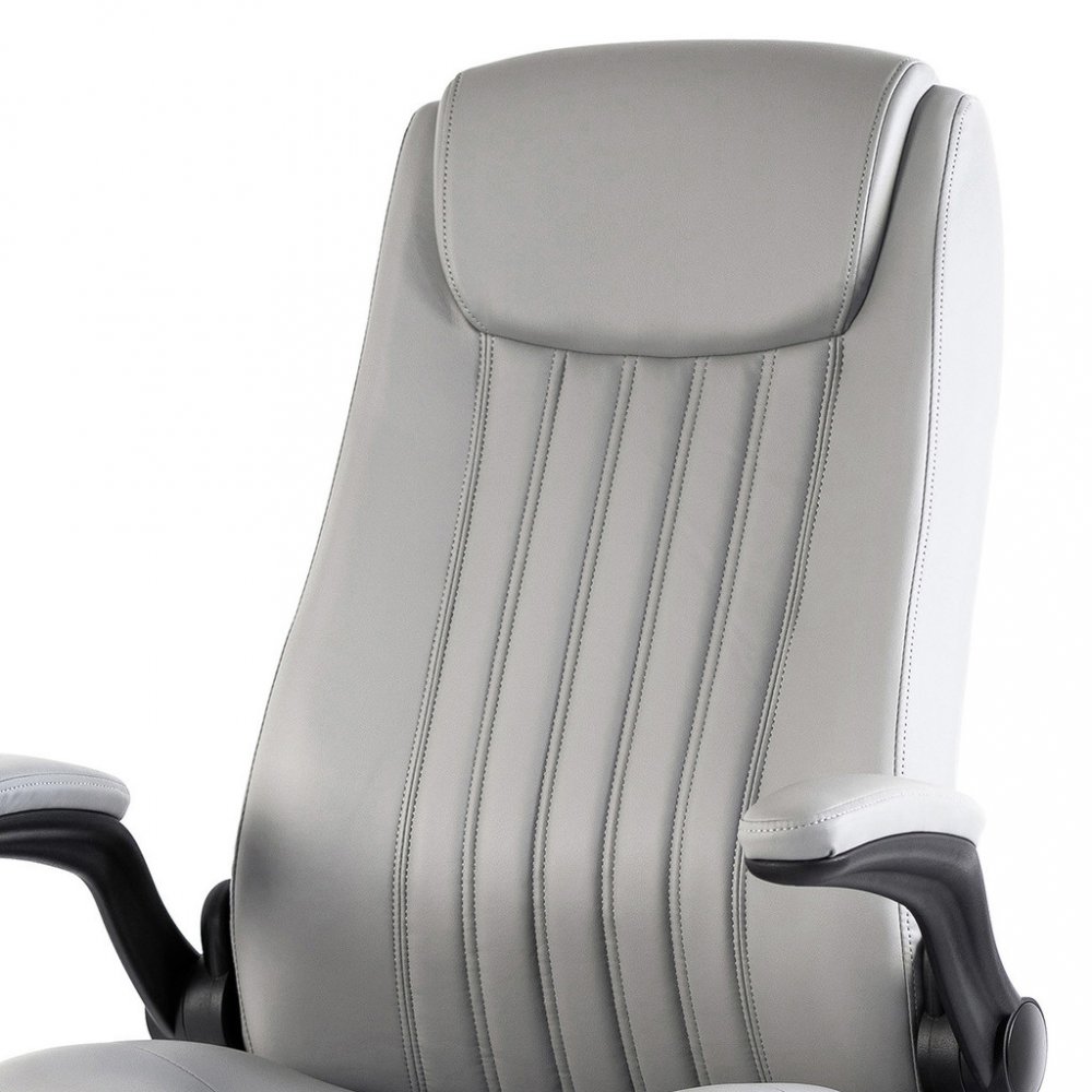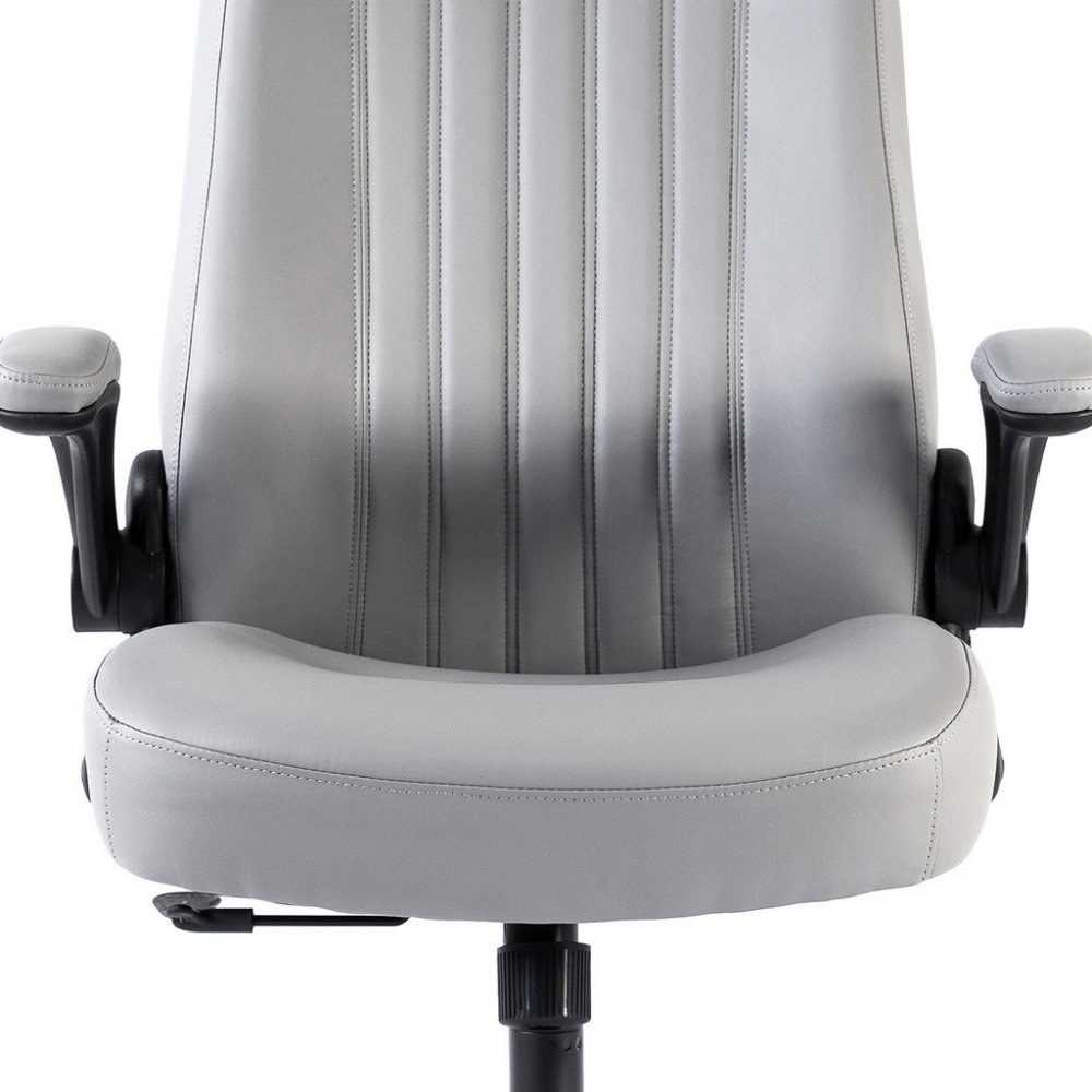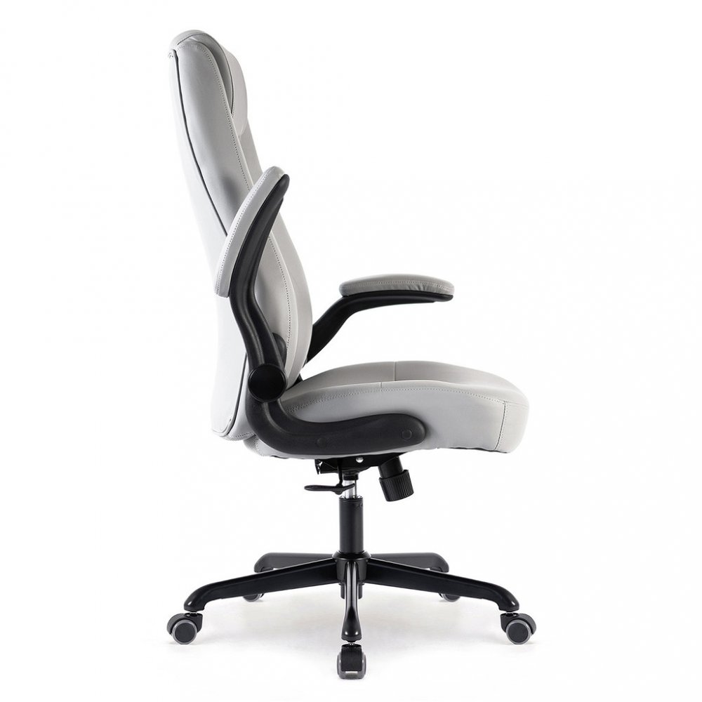 Kancelářské křeslo BOSTON s područkami je moderní křeslo s výjimečným polstrováním. Jeho hlavní předností je široký a pohodlný sedák. Ergonomicky tvarovaný opěrák je ideální pro správné držení těla bez nepříjemných bolestí zad. Je doplněný o zvýšenou opěrku hlavy. Křeslo vám poskytne pohodlné sezení na dlouhé hodiny. Své místo najde v každém interiéru, nebo kanceláři firmy. Potah křesla je z jemné a odolné umělé kůže světle šedé barvy se snadnou údržbou. Elegantní prošití vypadá fantasticky! Ruce si můžete položit na čalouněné područky, které se dají odklopit směrem nahoru. Svojí velikostí je vhodné pro osoby s výškou do 185 cm. Křeslo má kvalitní houpací mechaniku s nastavením síly houpání. Ta umožňuje změnit sklon křesla s aretací v několika polohách nebo si zvolit relaxační polohu (houpání). Síla houpání se reguluje v závislosti na váze uživatele velkým plastovým šroubem umístěným pod sedákem. Výška sezení se upravuje plynule páčkou. Je použitý kvalitní plynový píst s certifikátem BIFMA Class 3, černý kovový kříž má kolečka o průměru 50 mm pro všechny druhy podlah. Kancelářské křeslo má nosnost max. 130 kg, záruka 24 měsíců.