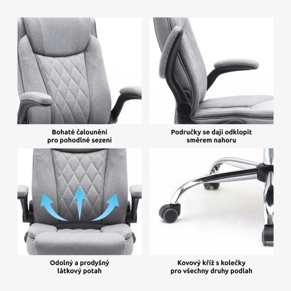 Vytvořte si pohodlné pracovní prostředí. Kancelářské křeslo SUPERKANCL bude vyhovovat každému, kdo tráví u pracovního stolu dlouhé hodiny. Vzhledem k možnosti nastavení výšky sedáku křesla si jej uzpůsobíte podle své postavy. Kancelářské křeslo SUPERKANCL je navrženo tak, aby uneslo až 130 kg. Zásadní přednosti kancelářského křesla SUPERKANCL Comfortable světle šedé Kancelářské křeslo SUPERKANCL přináší komfort při sezení Disponuje možností nastavení výšky sedáku křesla Výrobním materiálem výplně sedáku kancelářského křesla je molitan (PUR pěna) Povrch křesla tvoří látkový potah Sedák s anatomickým tvarem pomáhá minimalizovat tlak na páteř a bederní oblast Ke stabilitě a odolnosti přispívá plastová konstrukce Konstrukce je vybavena funkcí otáčení Kolečka se dobře pohybují po měkkých i tvrdých podlahách Kancelářské křeslo SUPERKANCL unese až 130 kg Houpací konstrukce přináší radostné a pohodlné houpání Má k dispozici odklopitelné područky Příjemné posezení i po několika hodinách Kancelářské křeslo...