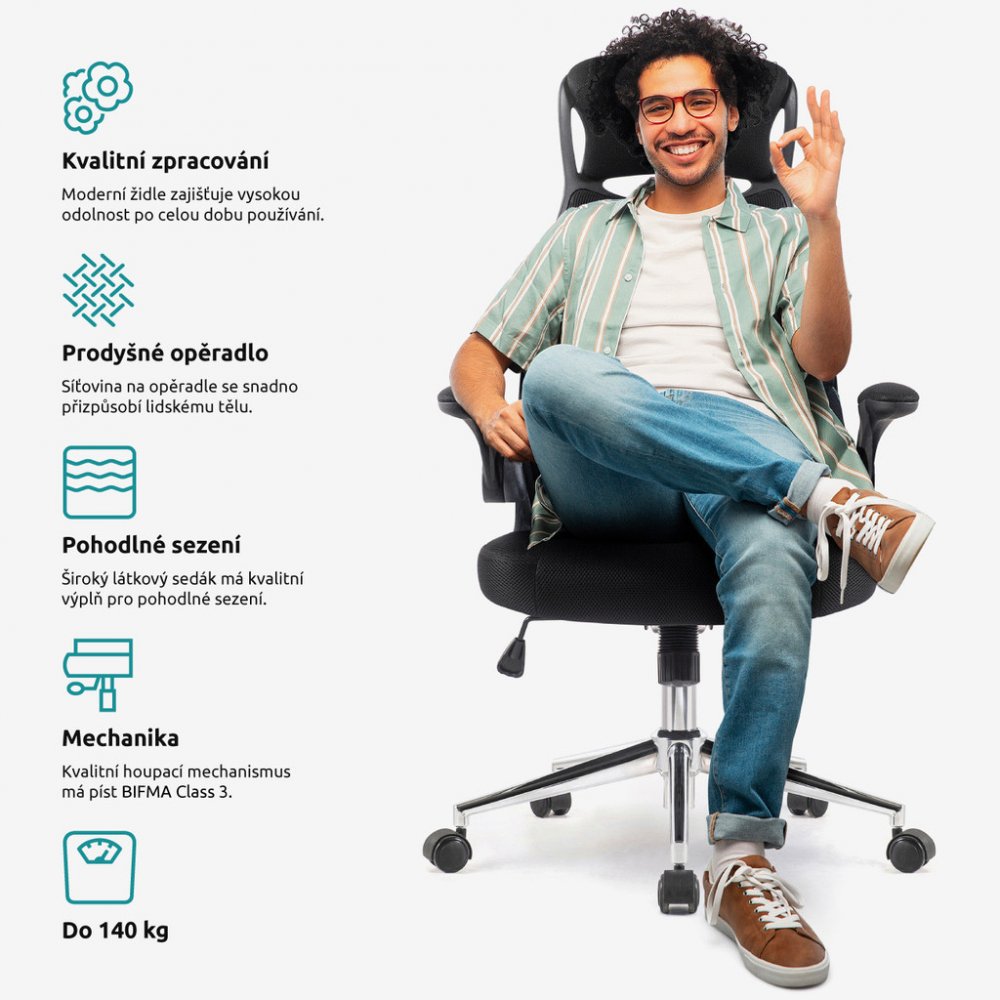 Kolečkové kancelářské křeslo je neodmyslitelnou výbavou stolů v elegantně zařízených kancelářích. Propracované tvary skýtají oporu a stojí za mimořádně pohodlným sezením. Superkancl Optima černá může nabídnout houpací konstrukci. Coby nejjednodušší typ je ideální pro kratší sezení. Při dlouhém sezení v kanceáři je prakticky nenahraditelná opěrka hlavy. Ta přinese méně námahy pro krční svaly. Bezbolestné sezení zajistí opěrka na bedra, která patřičně podepře záda. Stěžejní parametry kancelářského křesla Superkancl Optima černá Černá barva kancelářského křesla hezky doplní vaši kancelář Houpací mechanická konstrukce pro pohodlný posez V případě potřeby můžete snadno odklopit područky S bederní opěrkou je zajištěno správné držení těla Optimální sezení zajistí i hlavová opěrka Materiály potahů Superkancl Optima černá: textil a síťovina Kolečka jsou pogumovaná a pohybují se tiše Praktická maximální nosnost 140 kg Přizpůsobení: výšky sedáku Kancelářská židle Superkancl Optima černá má odolné materiály Textilní...