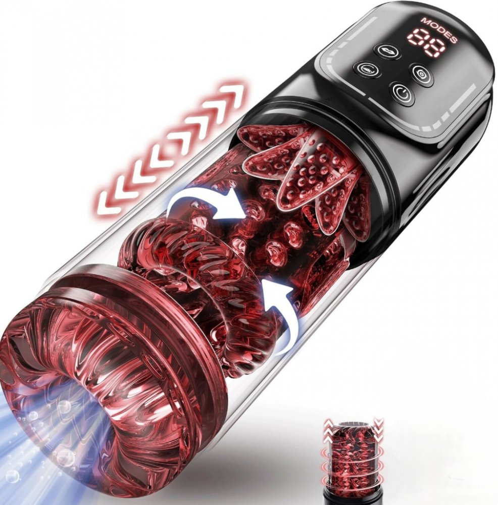 Chcete zažít výbuch rozkoše? Stačí zmáčknout tlačítko! Představujeme masturbátor od SuperLove nabitý funkcemi, ze kterých se vám rozklepou kolena a zježí všechny chlupy na těle. Umí sát, přirážet, rotovat i vibrovat, takže se připravte na zážitek, který hravě strčí do kapsy i reálný sex.