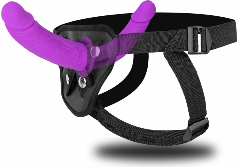 SuperLove Dual Dildo Strap On Harness Purple Black