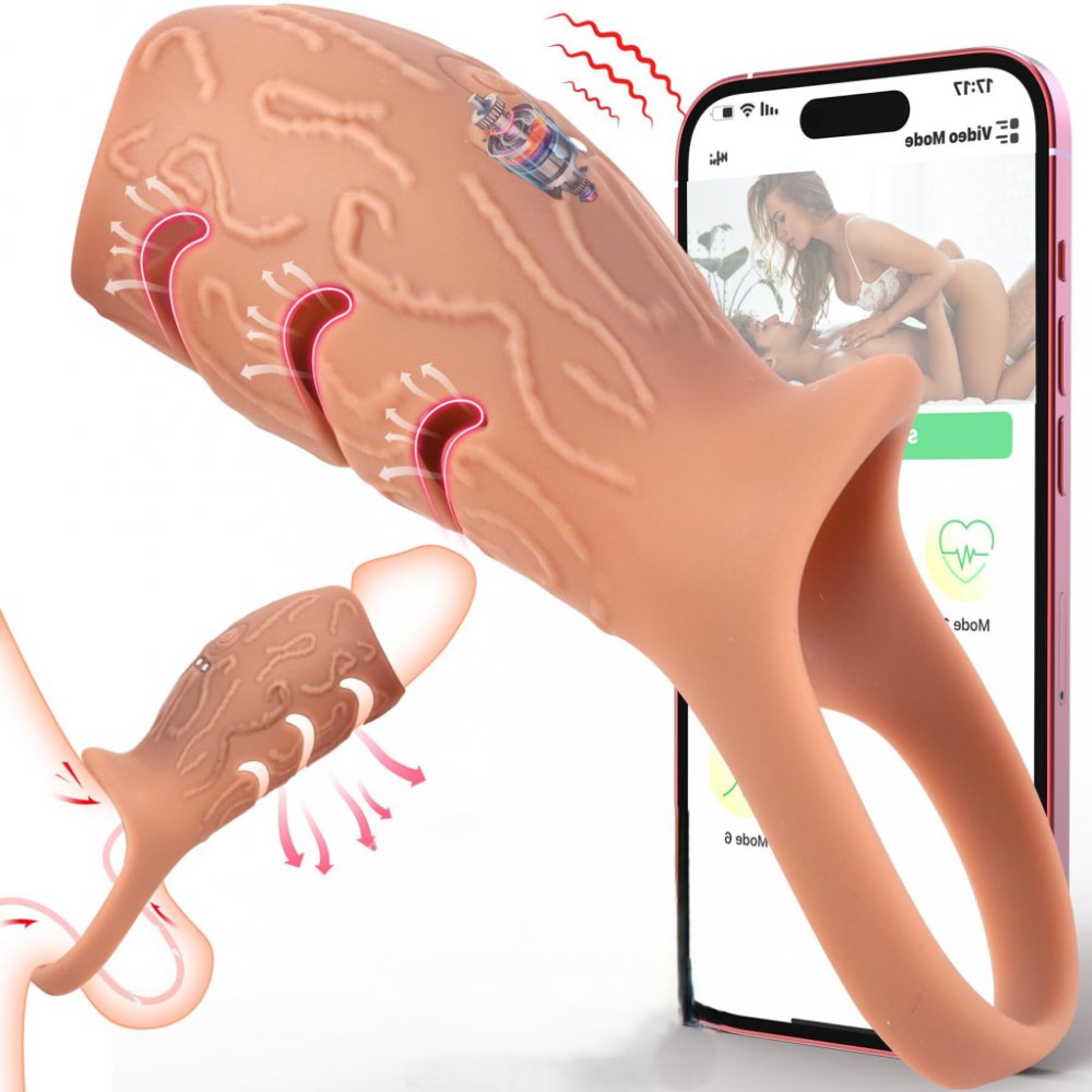 SuperLove Realistic Vibrating Penis Sleeve with App Skin