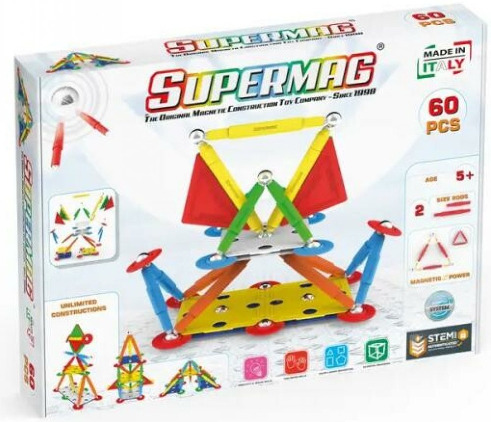 SUPERMAG je prémiová magnetická stavebnice, která spojuje všechny silné stránky patentovaného systému do jedinečné a nenapodobitelné linie. Umožňuje tvořit nespočetné množství konstrukcí, které lze rozšiřovat, rozebírat a znovu skládat – s přesností a technickostí skutečného projektu. Hračky Supermag nejsou jen hračky; jsou to vzdělávací nástroje, které podporují STEM (Věda, Technologie, Inženýrství a Matematika) vzdělávání. Zapojením se do hry s hračkami Supermag si děti rozvíjejí kritické myšlení, zlepšují pochopení vědeckých konceptů a objevují inženýrské principy prostřednictvím praktické hry.