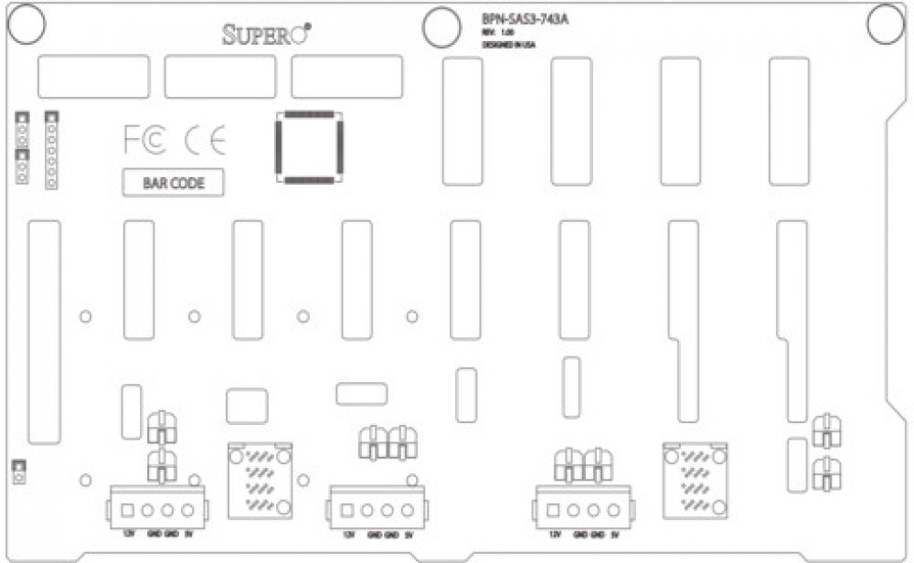 Backplane (SC743/745) 8x3.5-inch SAS3/SATA3 12Gbps backplane, 4 of 8 ports support NVMe
