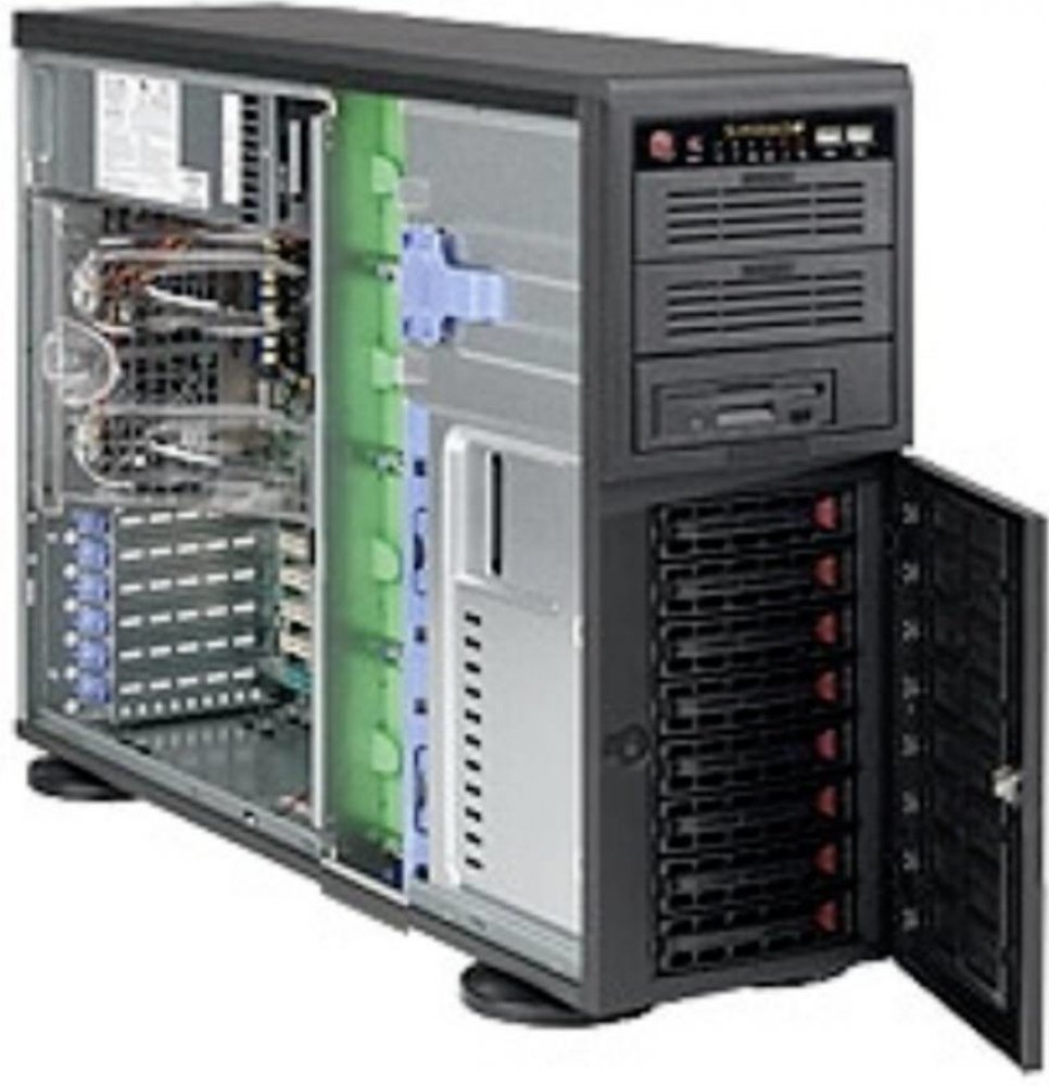 Supermicro CSE-743TQ-903B-SQ. Formát: Full Tower, Model: Server, Barva: Černá. Napájecí zdroj: 903 W. Instalované přední ventilátory: 2x 80 mm, Podporované průměry předních ventilátorů: 80 mm, Instalované zadní ventilátory: 1x 90 mm. Podporované pevné velikosti disků: 2.5,3.5,5.25". Šířka: 178 mm, Hloubka: 647 mm, Výška: 452 mm