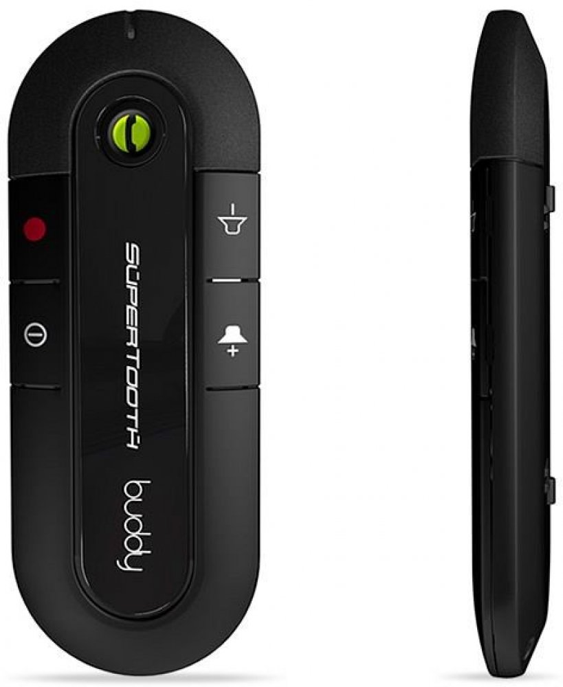 Přenosné Bluetooth handsfree Supertooth Buddy je ideálním společníkem pro pohodlné a bezpečné telefonování na cestách bez pokut. Buddy zaujme svou velikostí (pouze 129 x 49 x 14,6 mm) a stejně jako ostatní handsfree Supertooth se umísťuje na sluneční clonu v interiéru vozidla - toto řešení skýtá mnoho výhod. Necloní při výhledu z vozidla, zároveň je blízko hlavy řidiče pro perfektní kvalitu hovoru. Díky novému vylepšenému mikrofonu zajišťuje BUDDY čistý zvuk bez ozvěn. Tradice značky Supertooth Vám zajistí klidné telefonování na cestách.